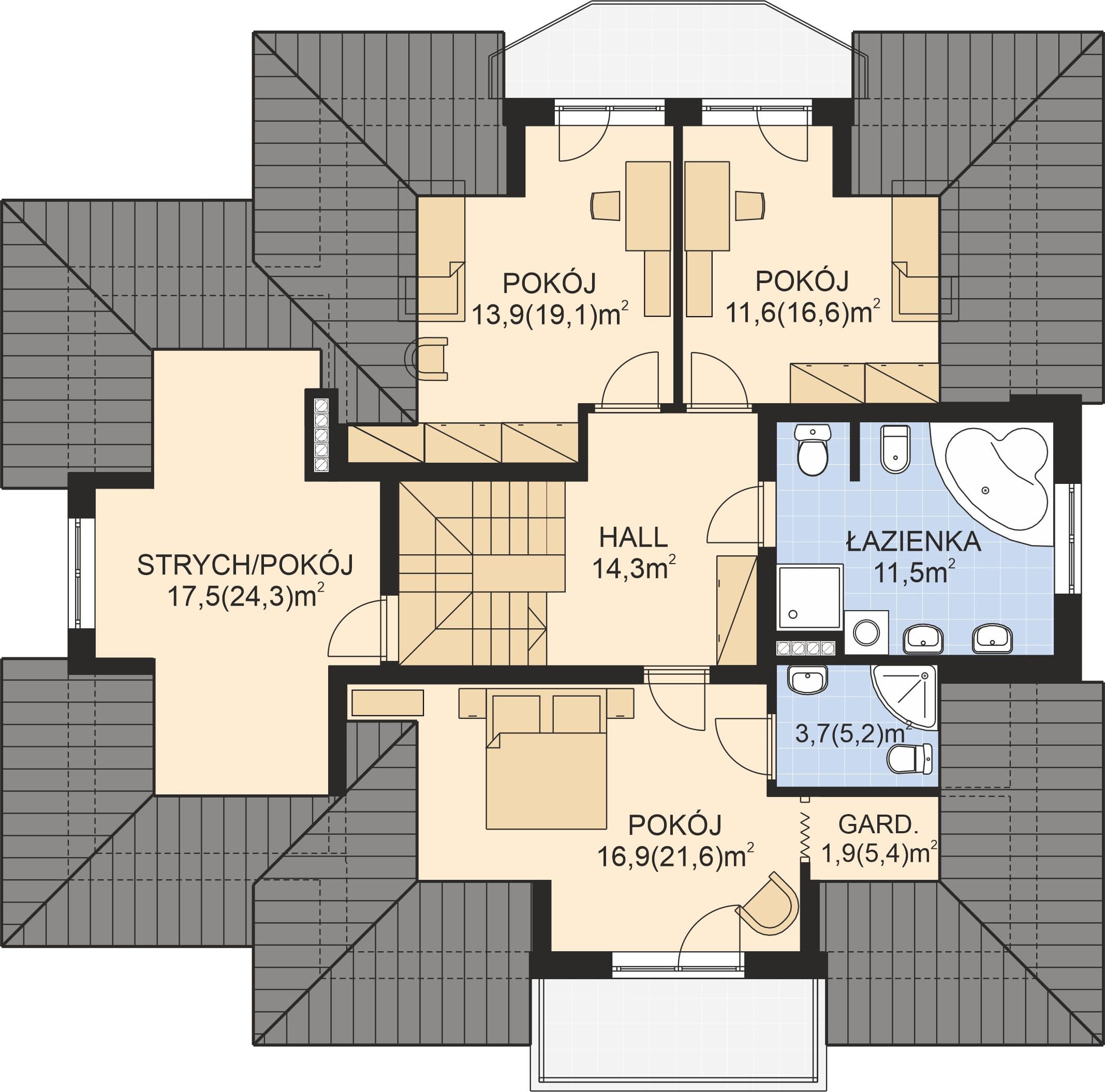 - Rodzaj dachuWielospadowy