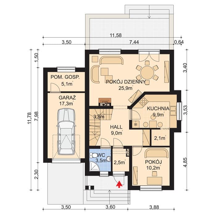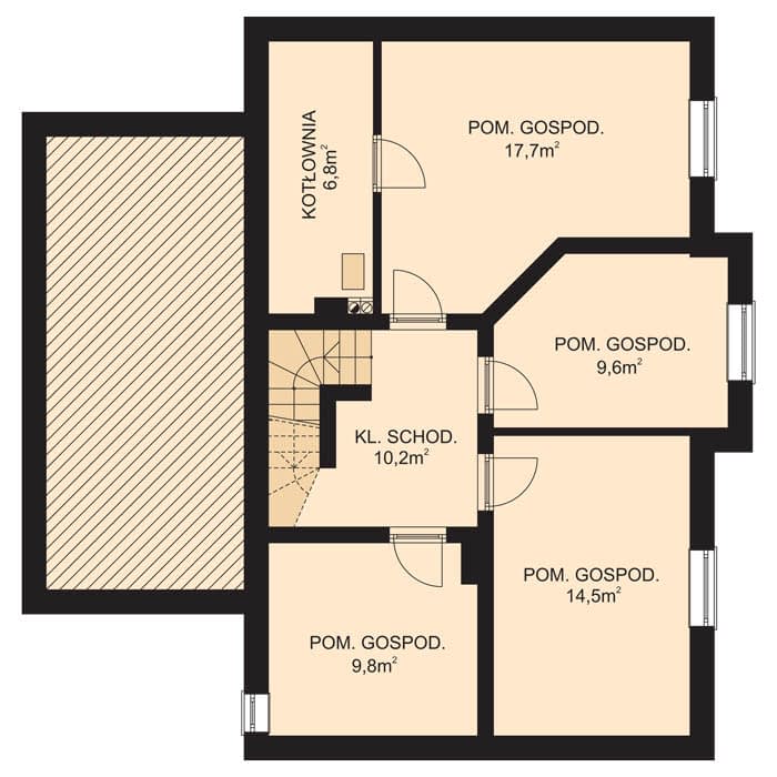 - KondygnacjeParterowy, z poddaszem, z piwnicą