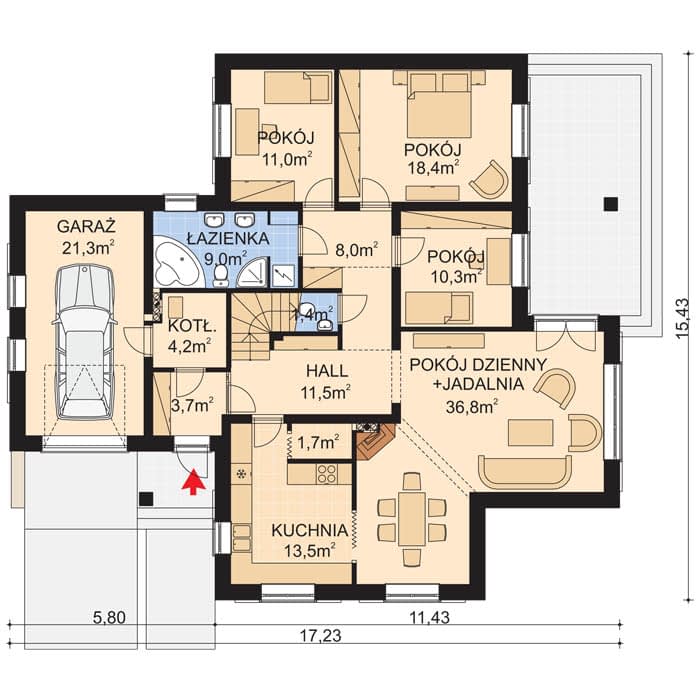 - Rodzaj dachuWielospadowy