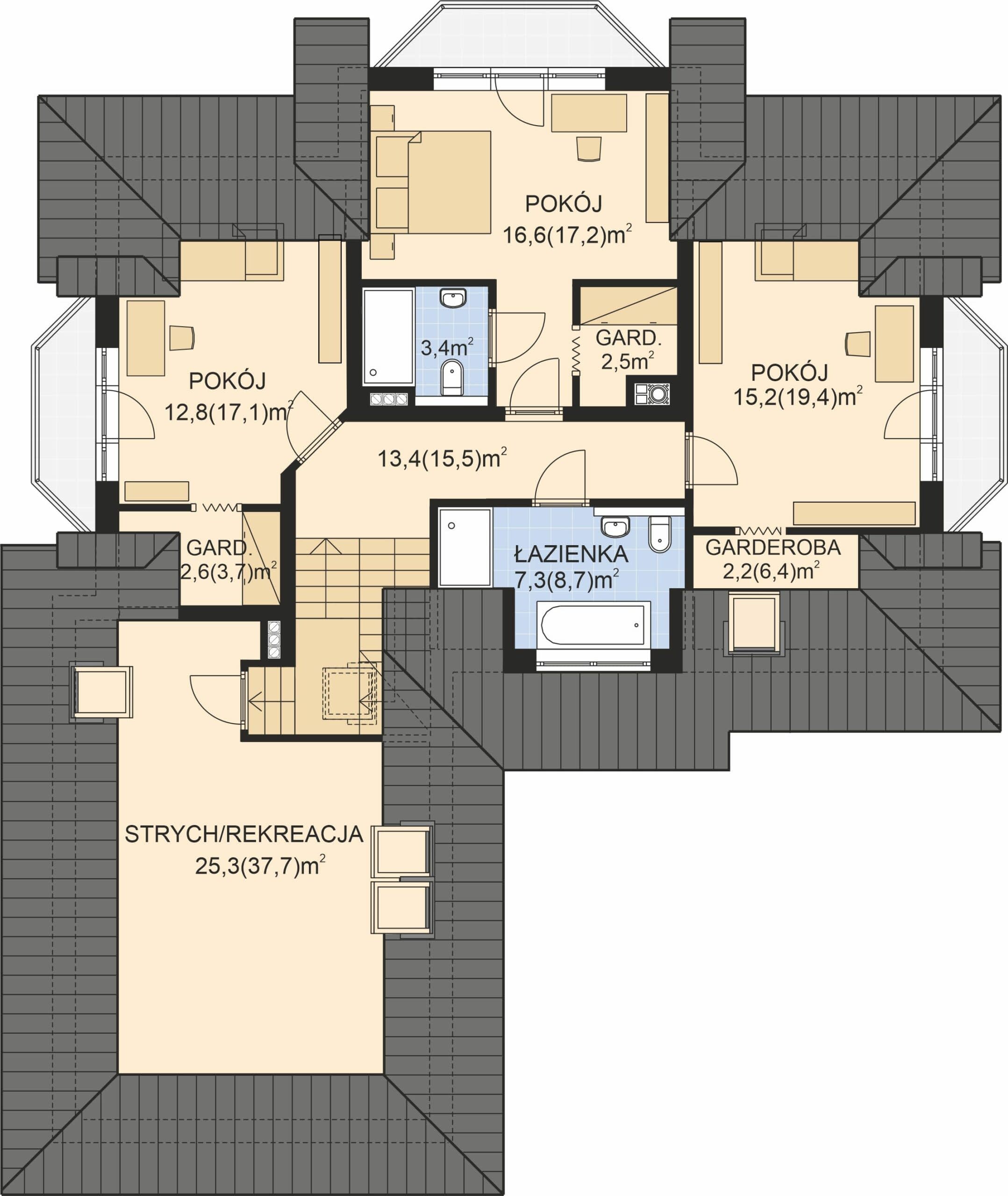 - KondygnacjeParterowy, z poddaszem