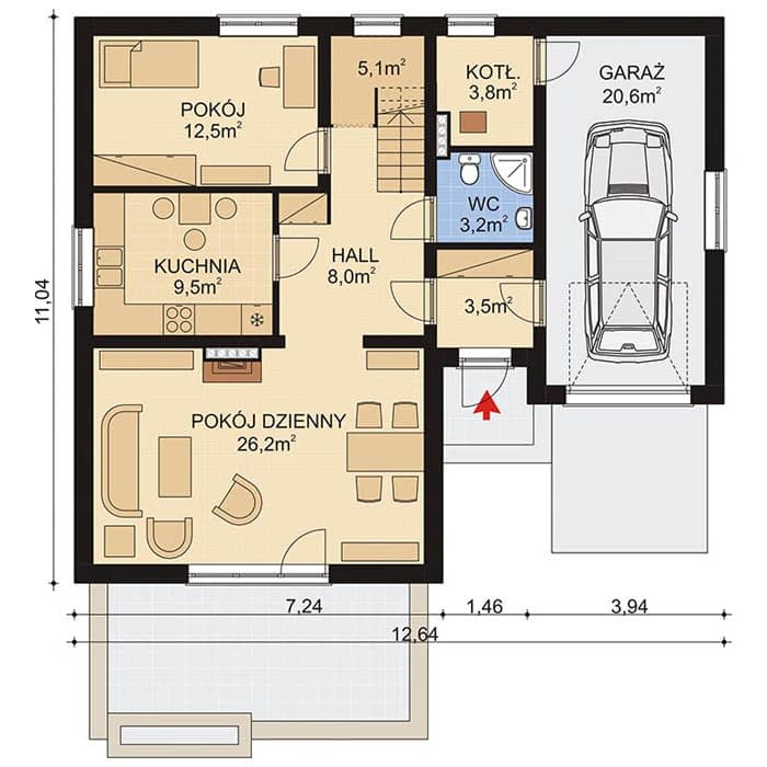 - Minimalne wymiary działki1904 x 2064m