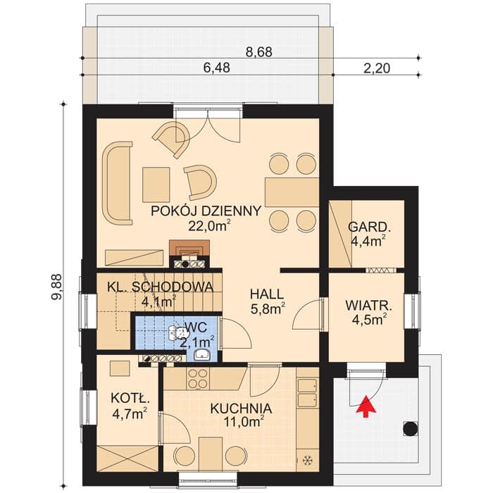- Wysokość domu7.66 m