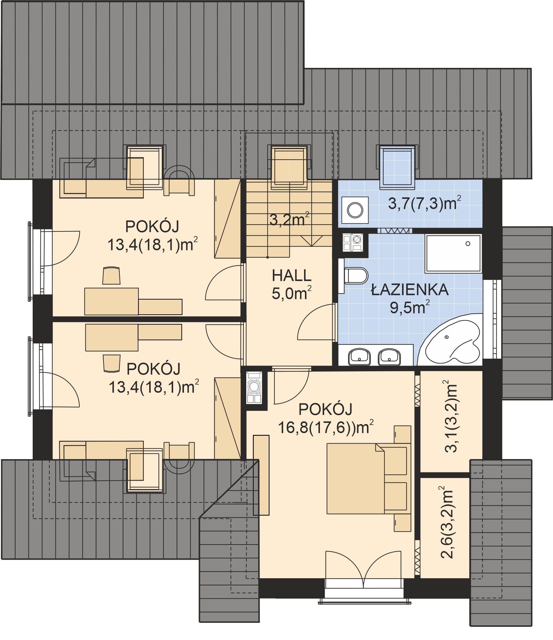 - szczegóły konstrukcyjne: belki, żebra, podciągi, słupy itp.