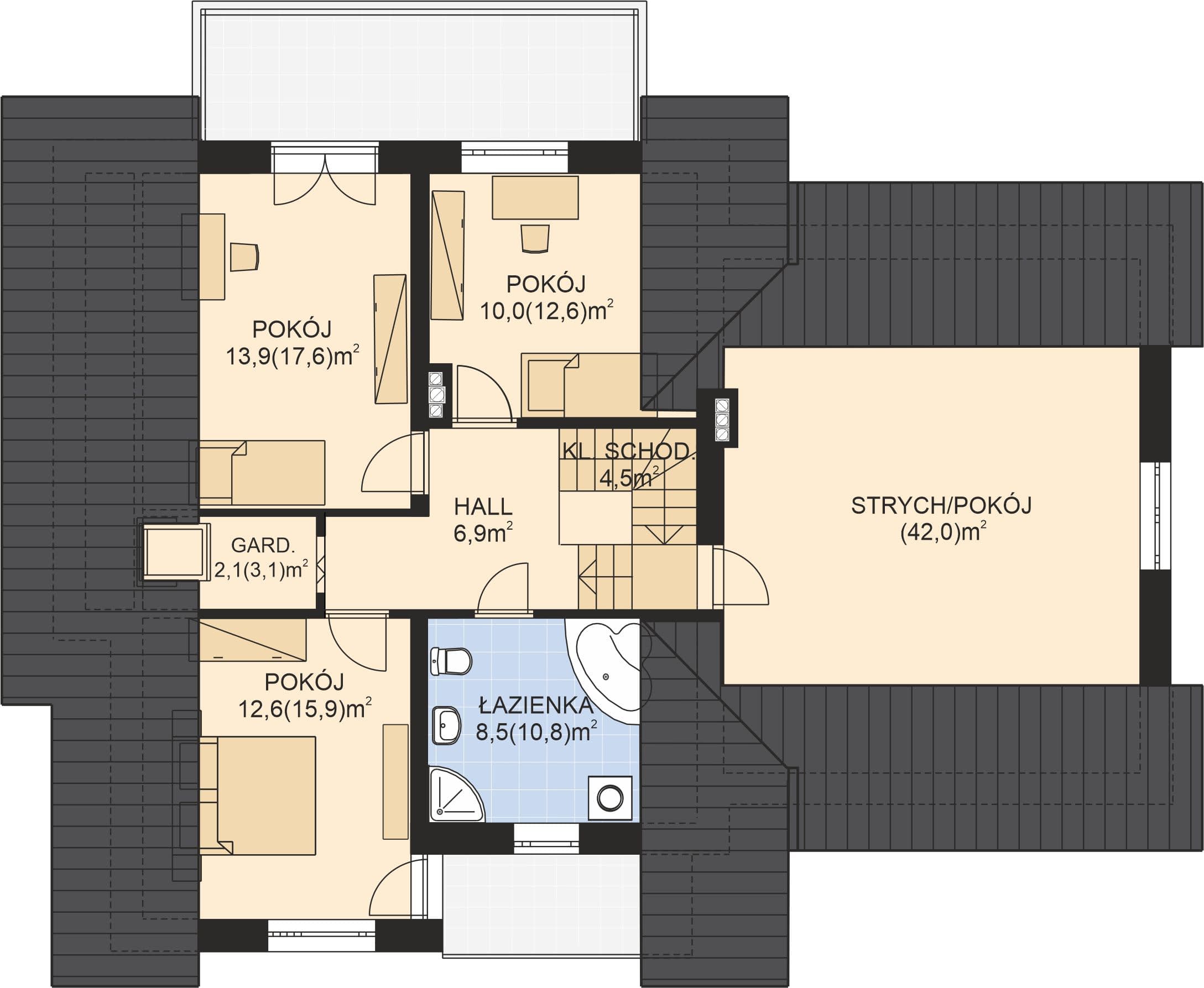 - KondygnacjeParterowy, z poddaszem