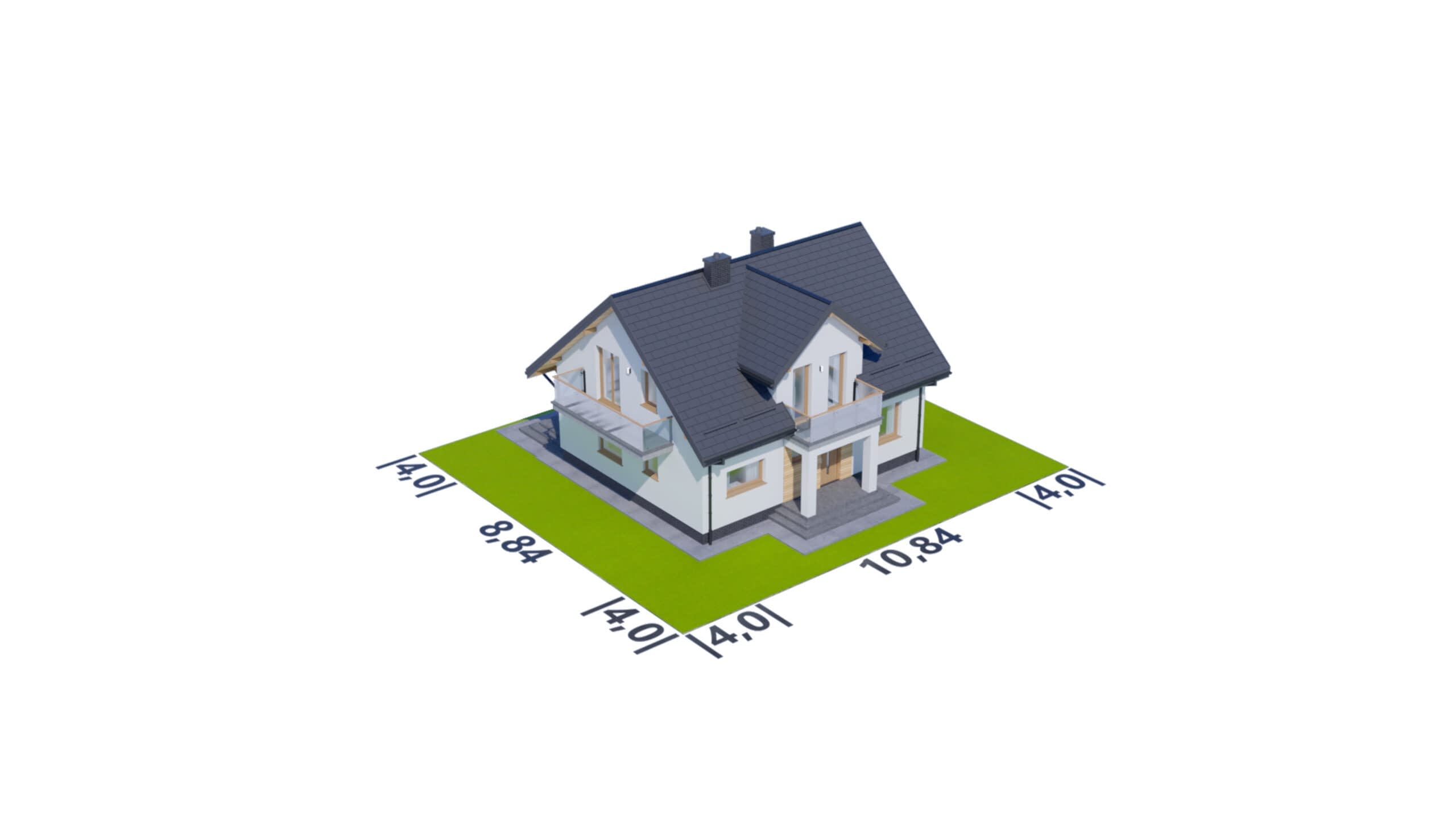 - Minimalne wymiary działki1684 x 1884m