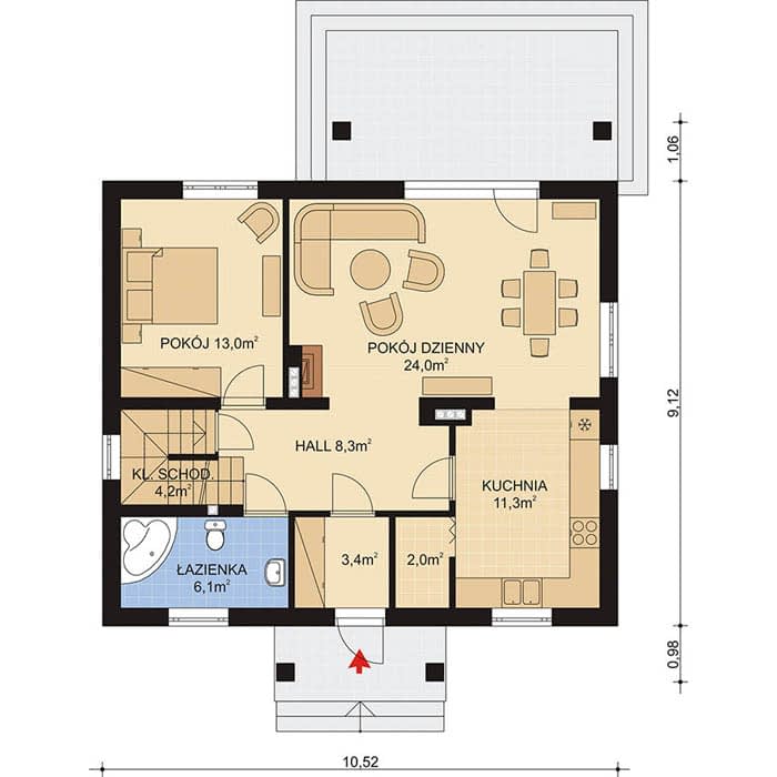 - KondygnacjeParterowy, z poddaszem, z piwnicą
