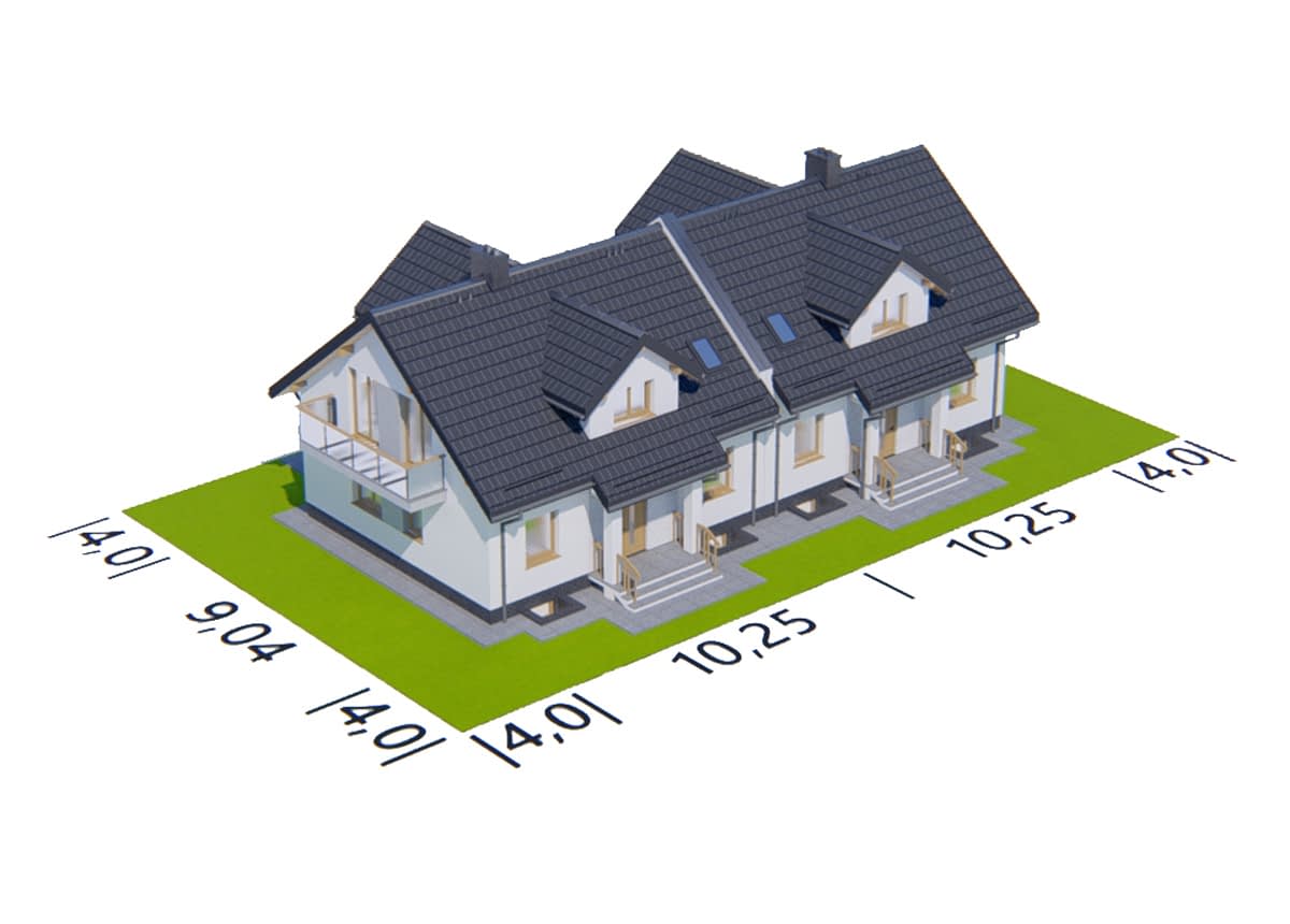 - Minimalne wymiary działki17.04 x 14.25m