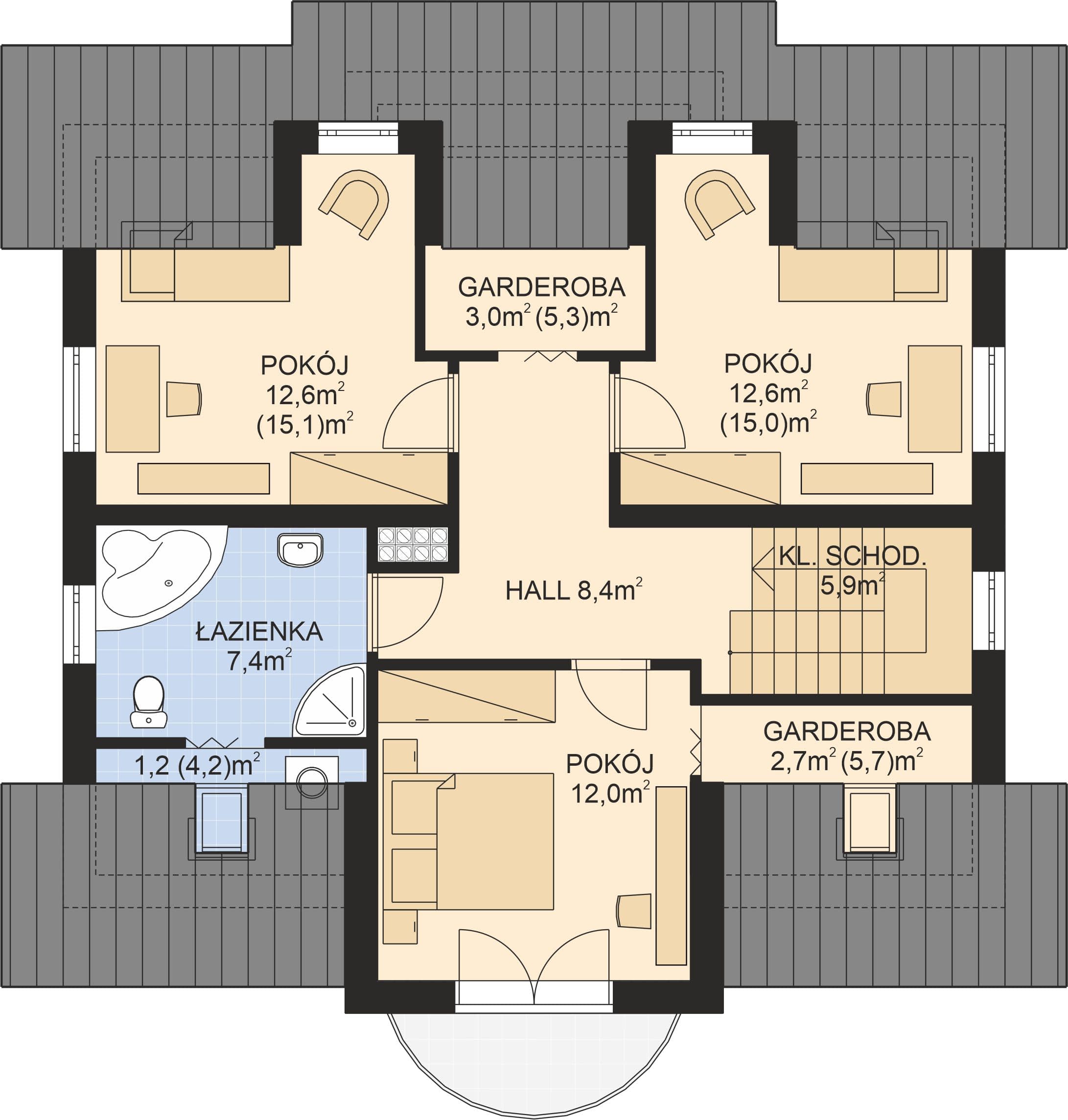 - KondygnacjeParterowy, z poddaszem, z piwnicą