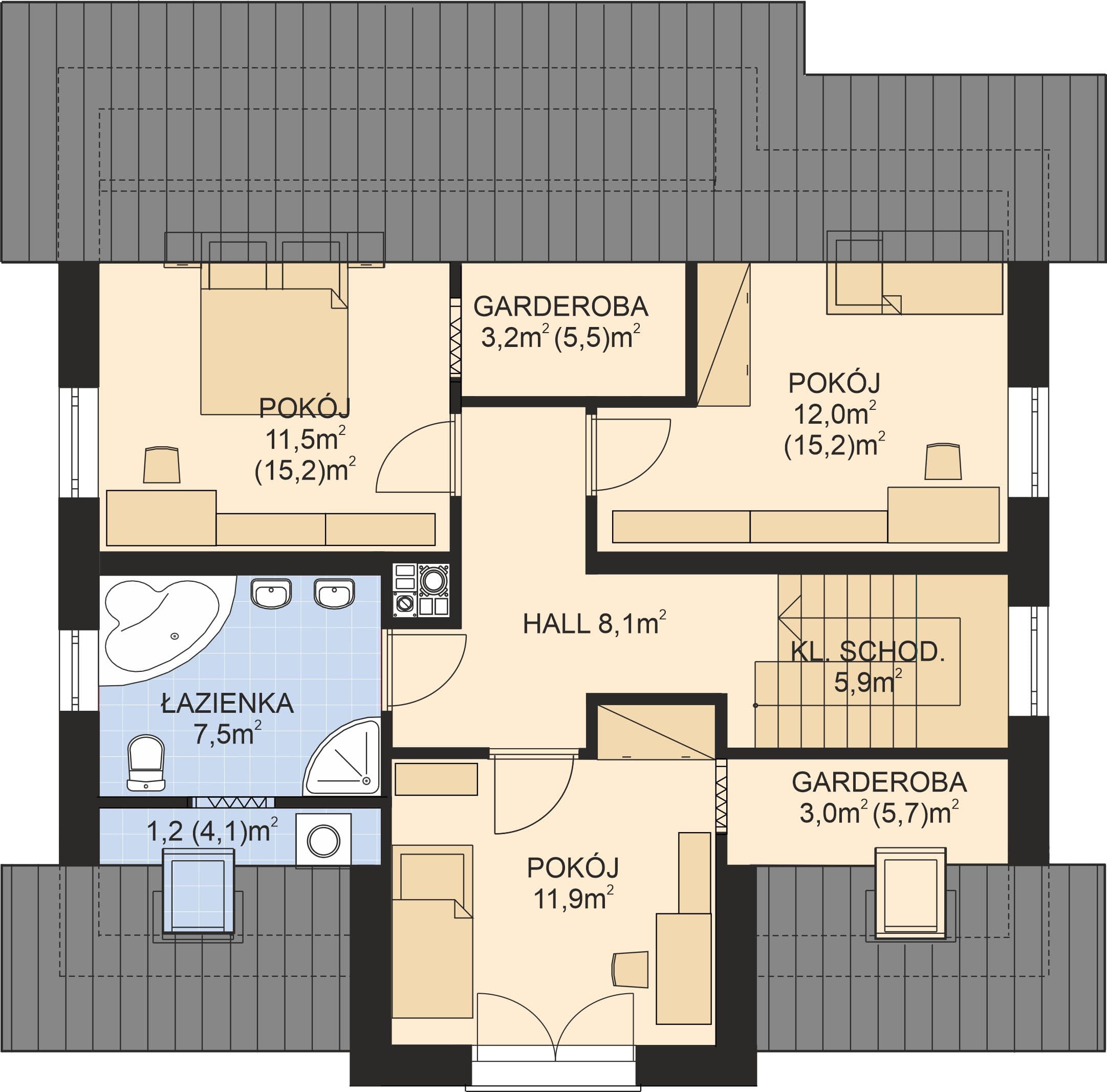 - Rodzaj dachuWielospadowy
