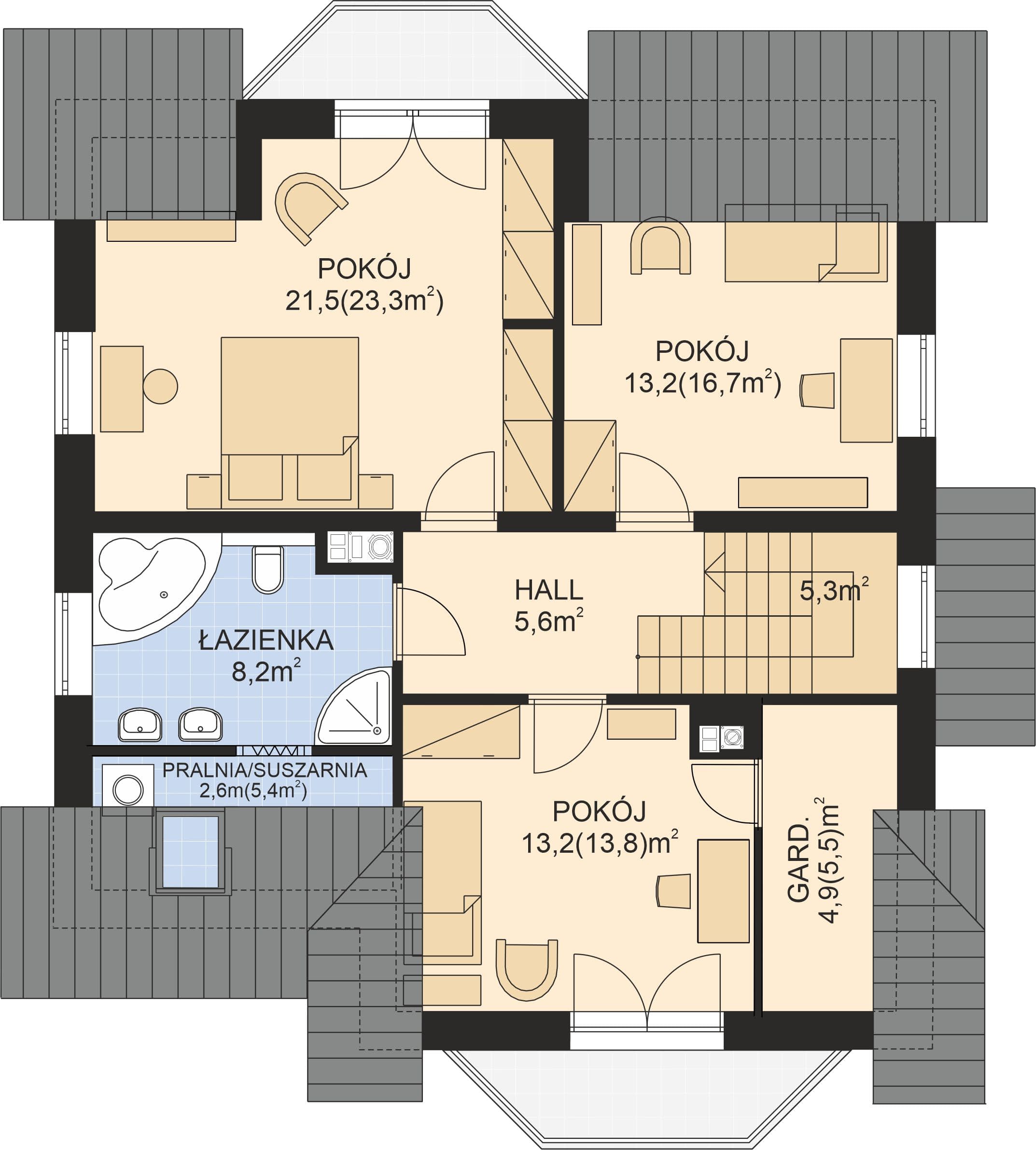 - Rodzaj dachuWielospadowy