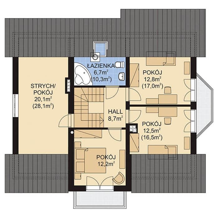 - KondygnacjeParterowy, z poddaszem
