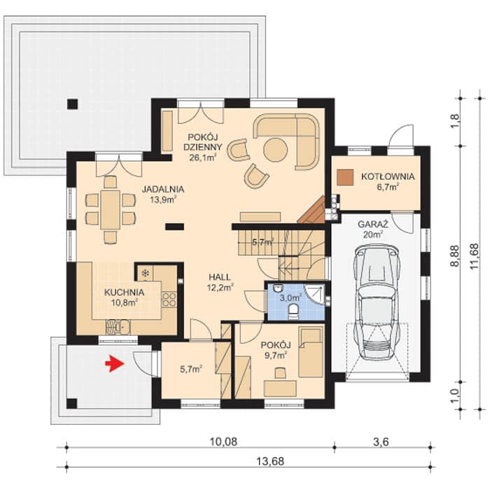 - KondygnacjeParterowy, z poddaszem