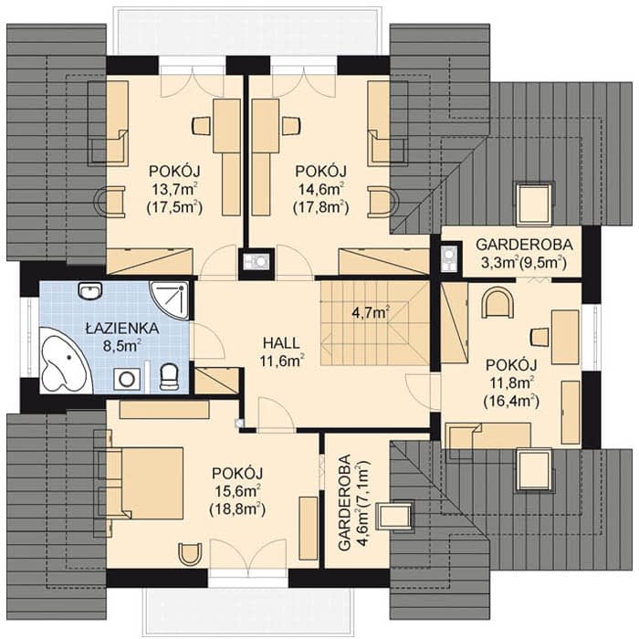 - szczegóły konstrukcyjne: belki, żebra, podciągi, słupy itp.