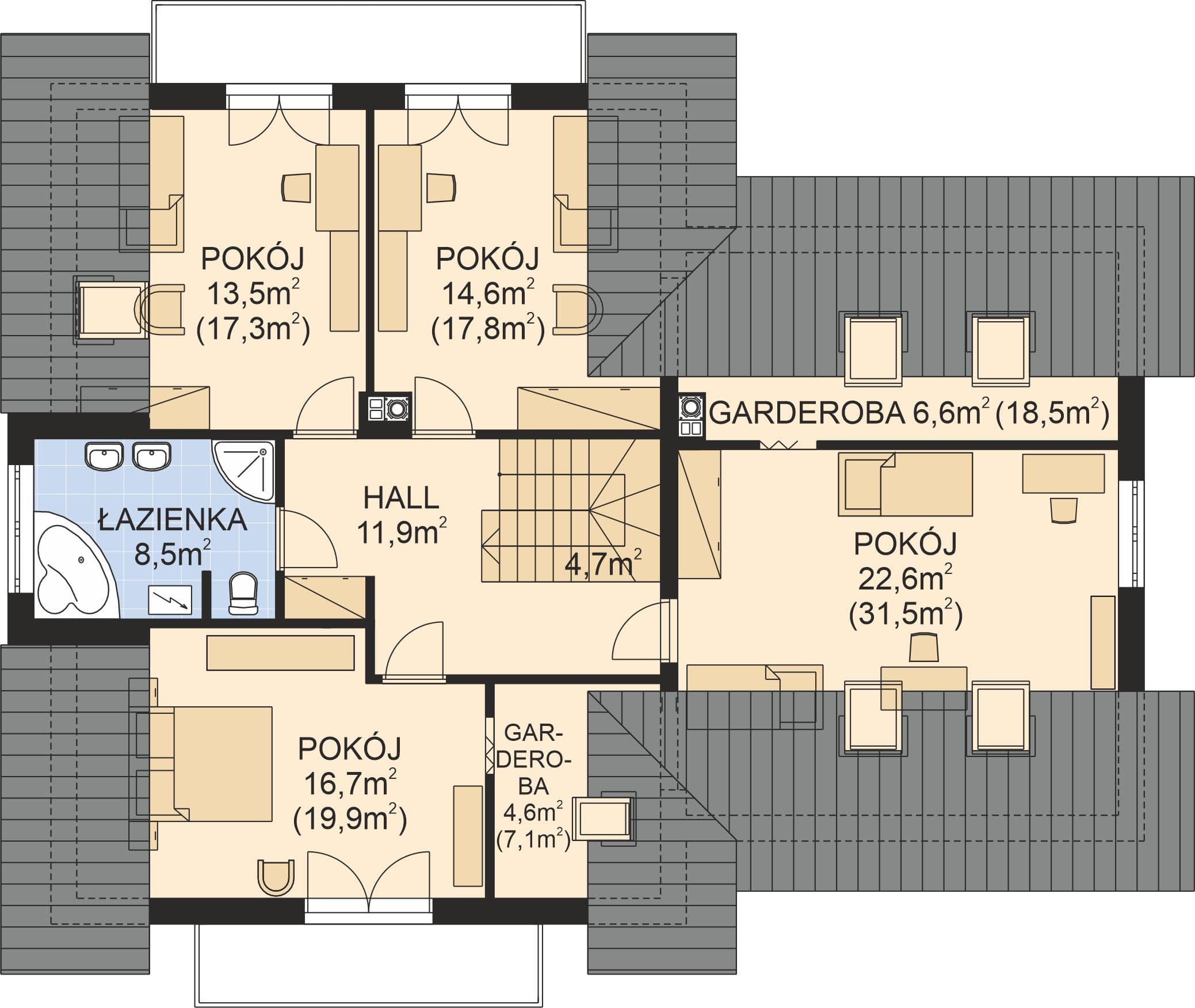 - szczegóły konstrukcyjne: belki, żebra, podciągi, słupy itp.