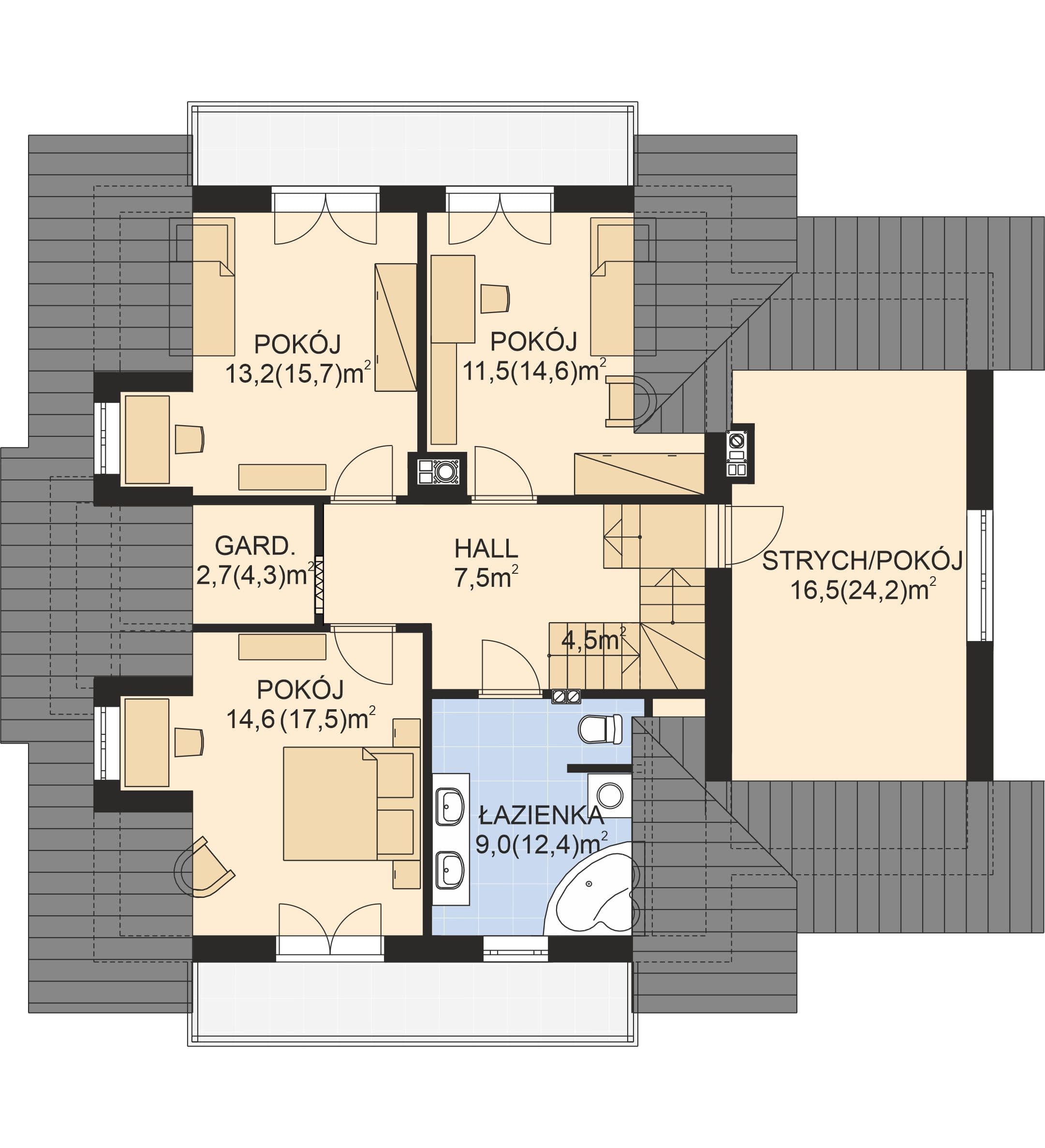 - Rodzaj dachuWielospadowy