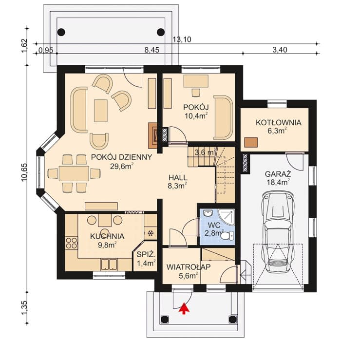 - Minimalne wymiary działki1865 x 2110m