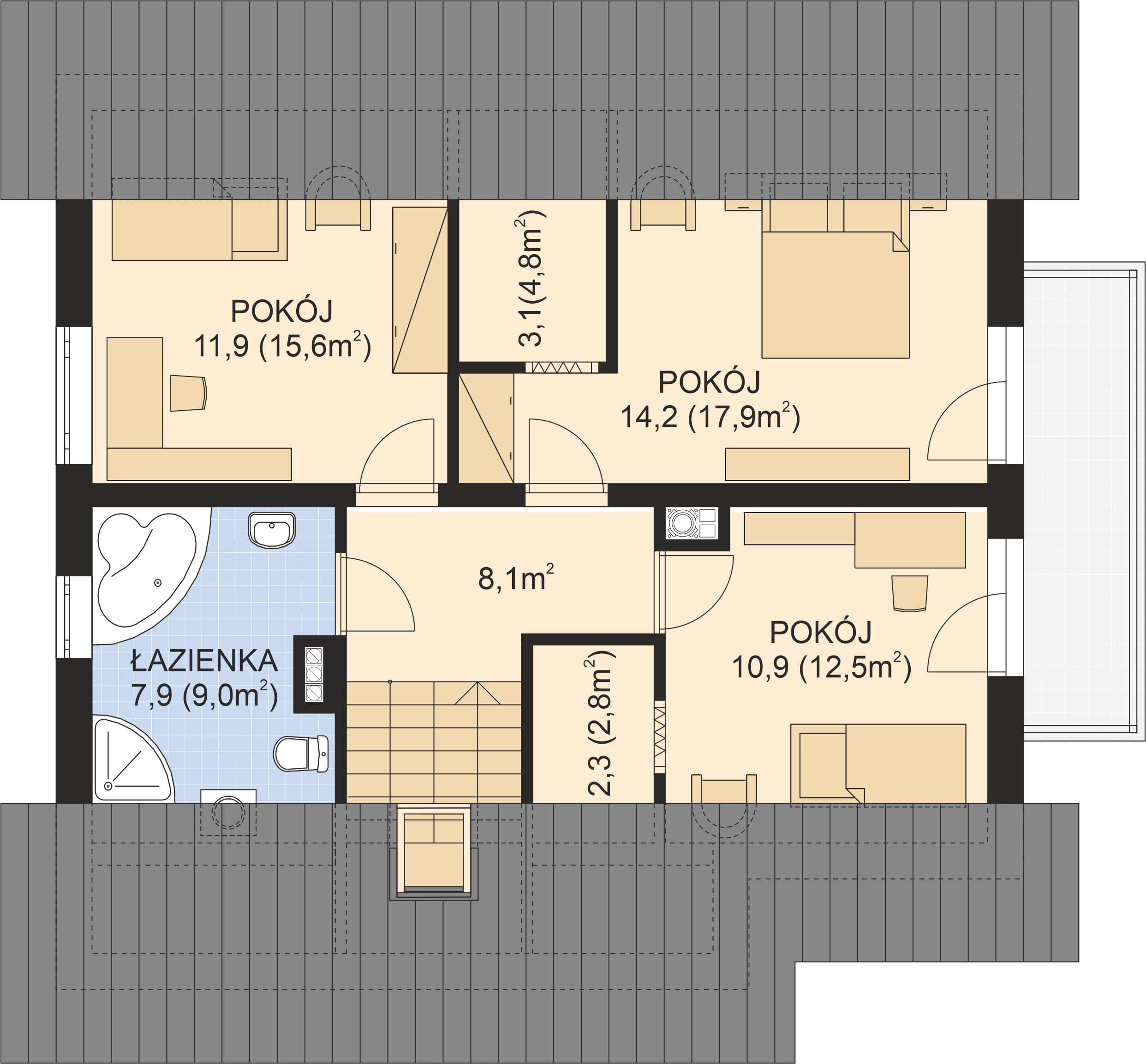 - Rodzaj dachuWielospadowy