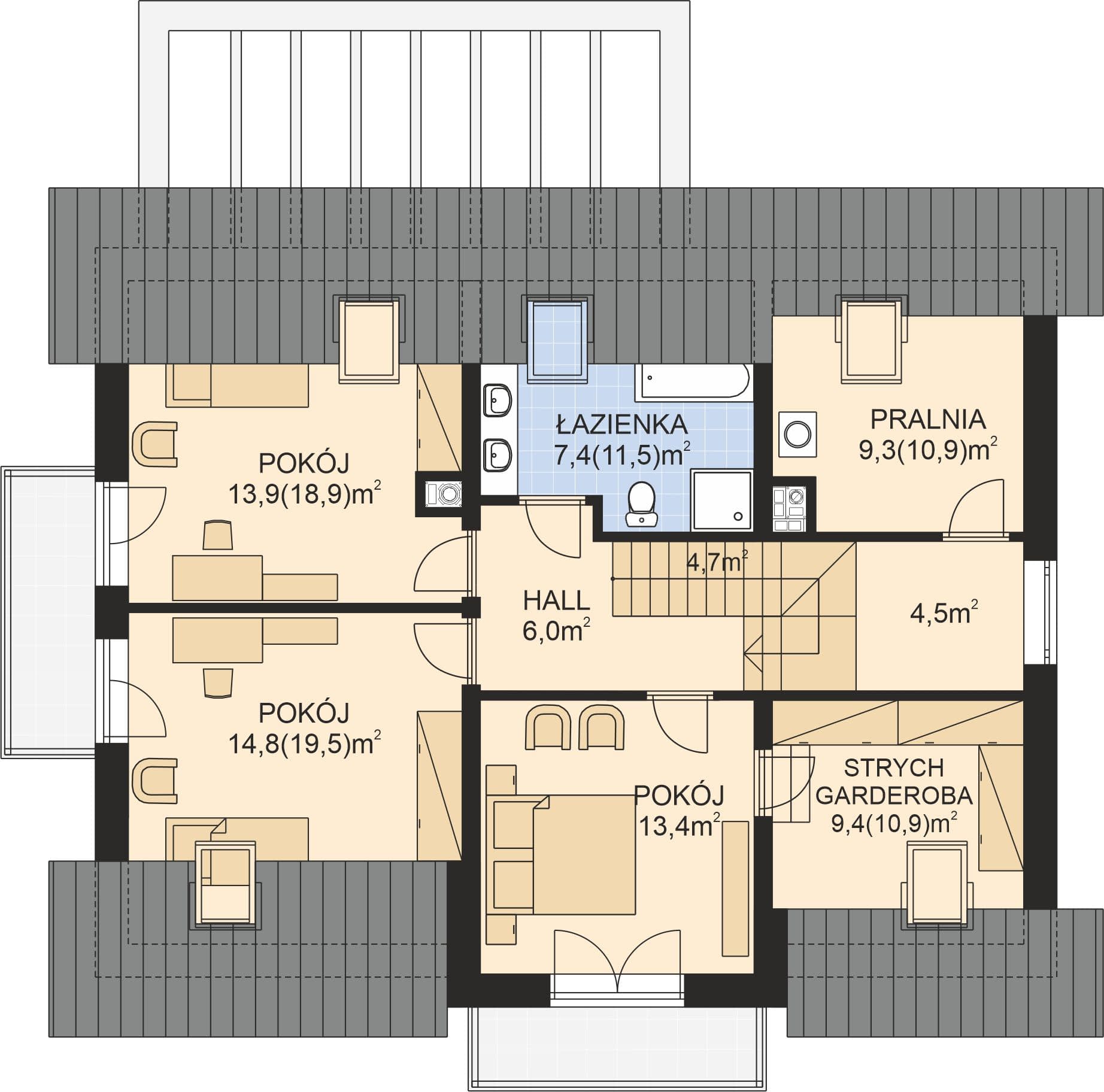 - Powierzchnia dachu202.7 m²