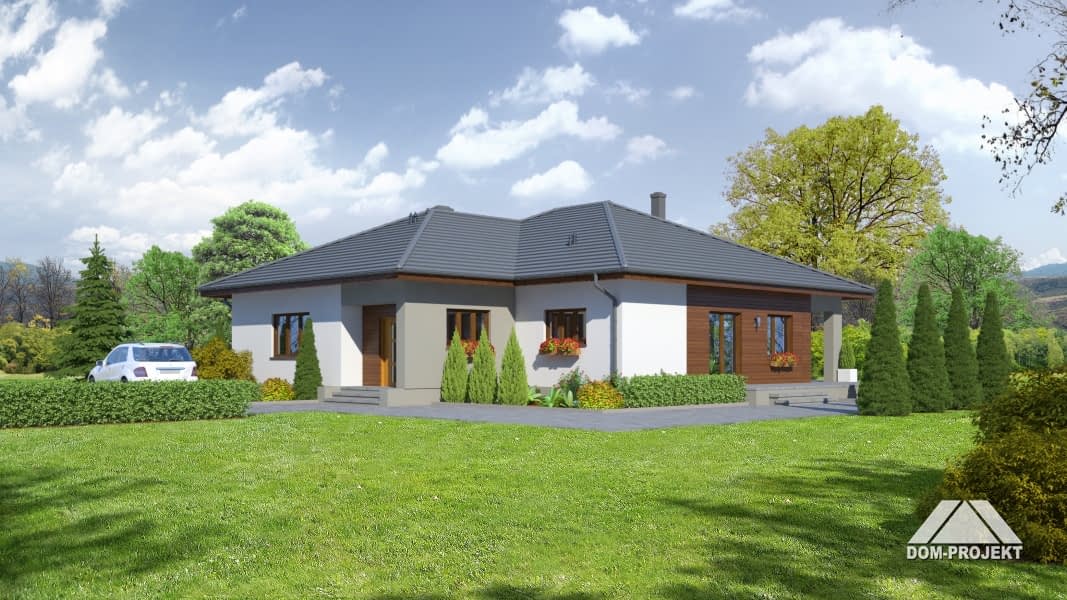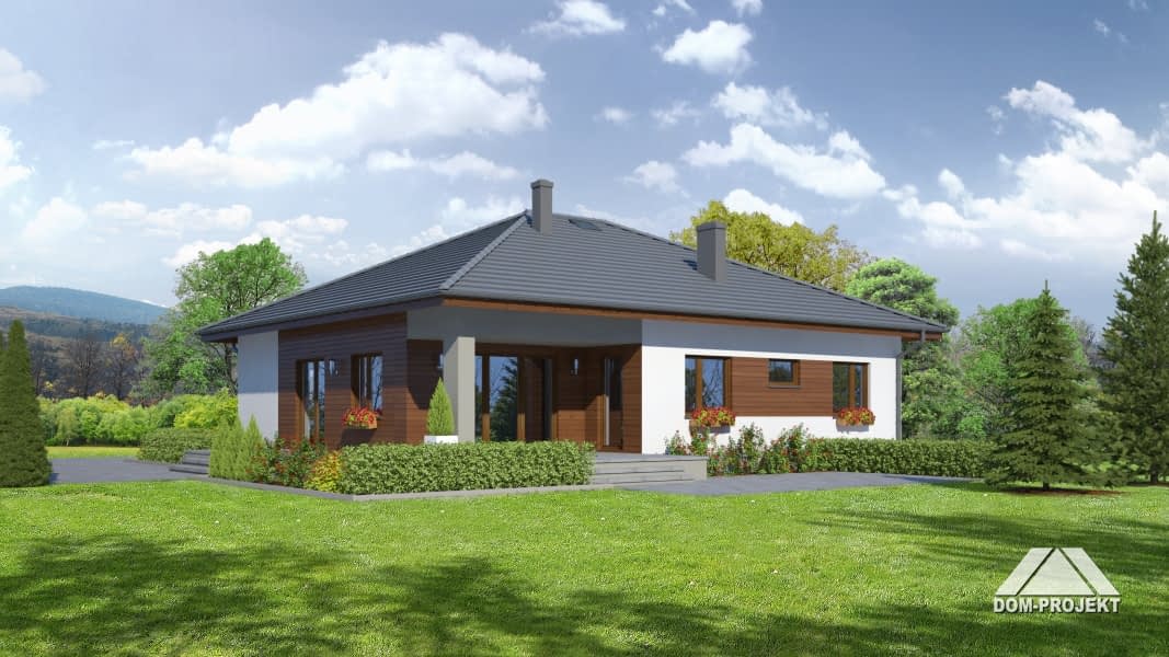 Dom parterowy z wydzieloną dodatkową częścią mieszkalną przeznaczoną pod wynajem. Duży salon z aneksem kuchennym, kominkiem i wyjściami na taras. Trzy pokoje, dwie łazienki, korytarz i wiatrołap oraz pomieszczenia pod wynajem (salon z aneksem kuchennym, pokój, łazienka). Poddasze nieużytkowe z możliwością wykorzystania na strych lub cele gospodarcze.Rzuty