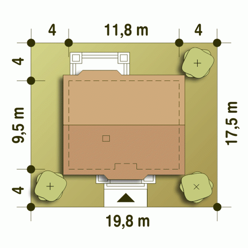 - Minimalne wymiary działki17.5 x 19.8m