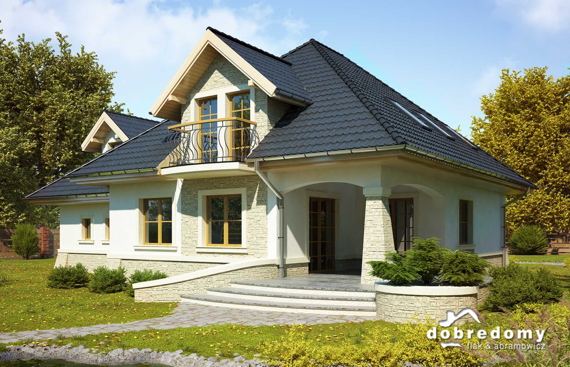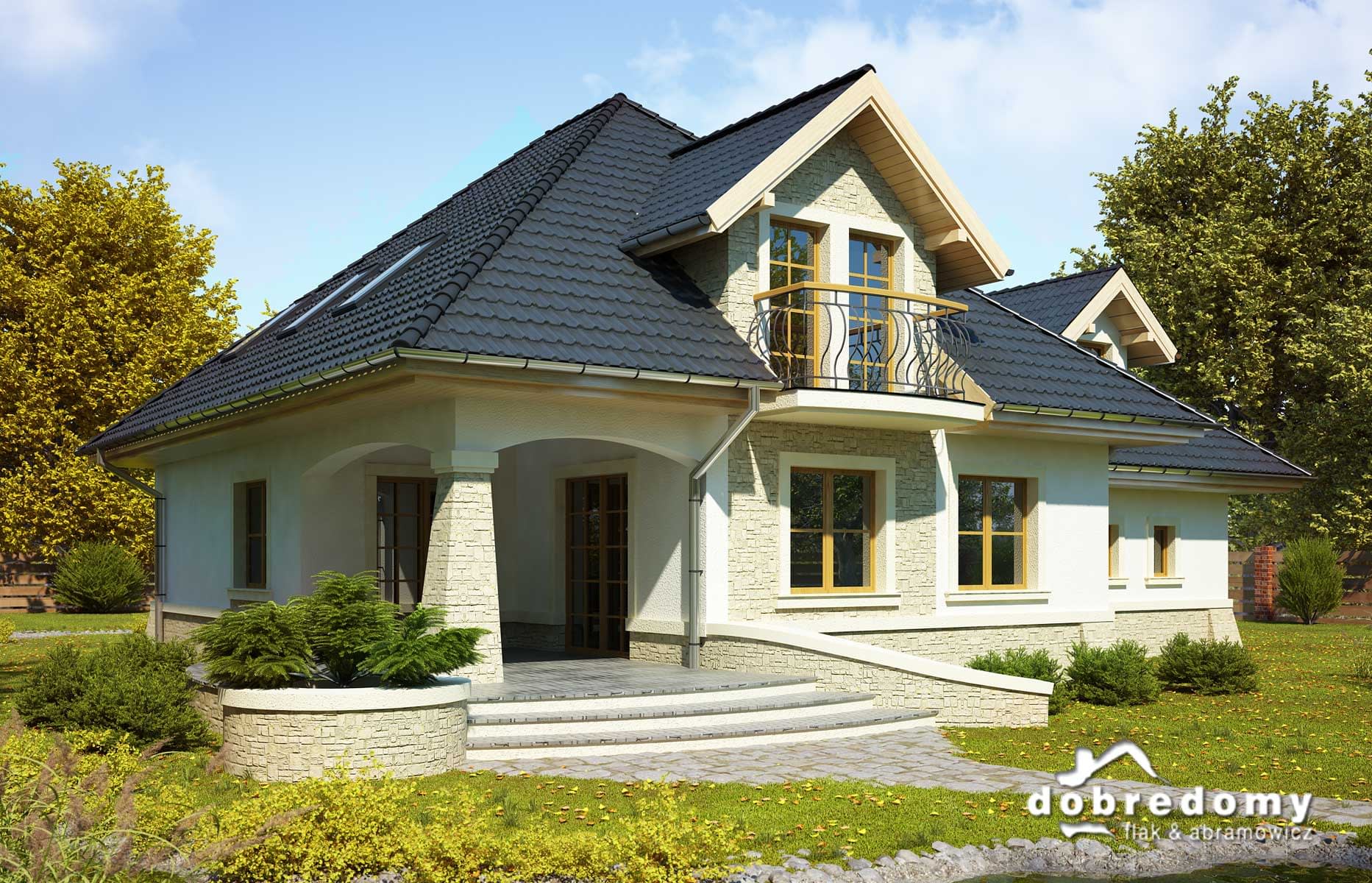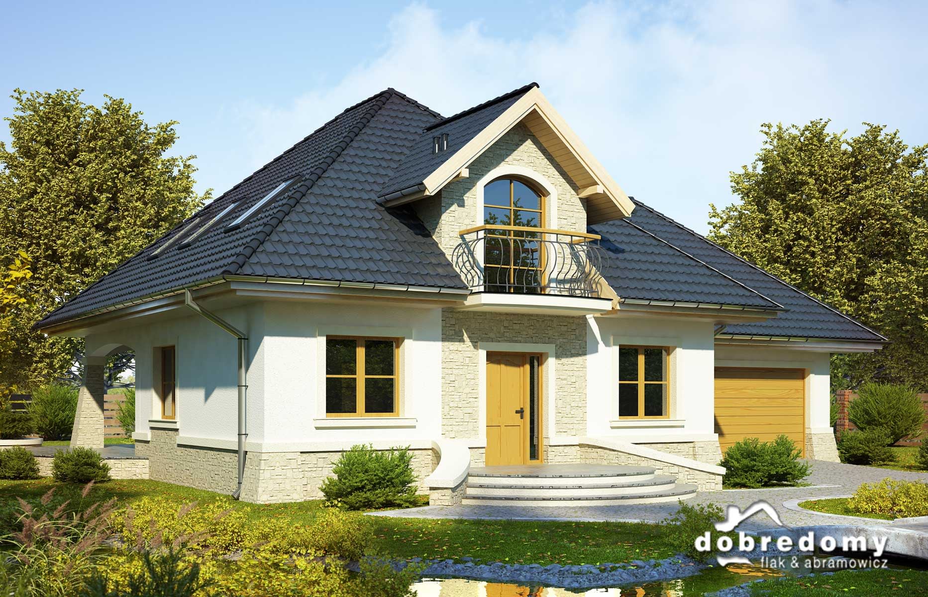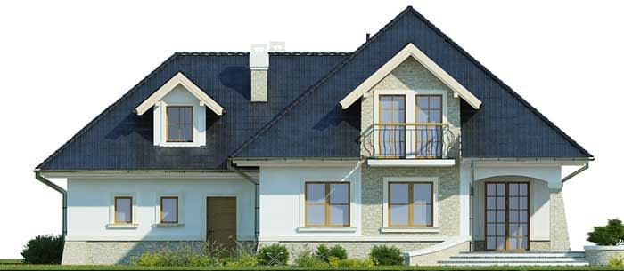 Elewacje pokryte tynkiem strukturalnym w systemie ociepleń Termo Organika. W projekcie zastosowano okna dachowe marki FAKRO. Pokrycie dachu - dachówka ceramiczna lub cementowa CREATON.