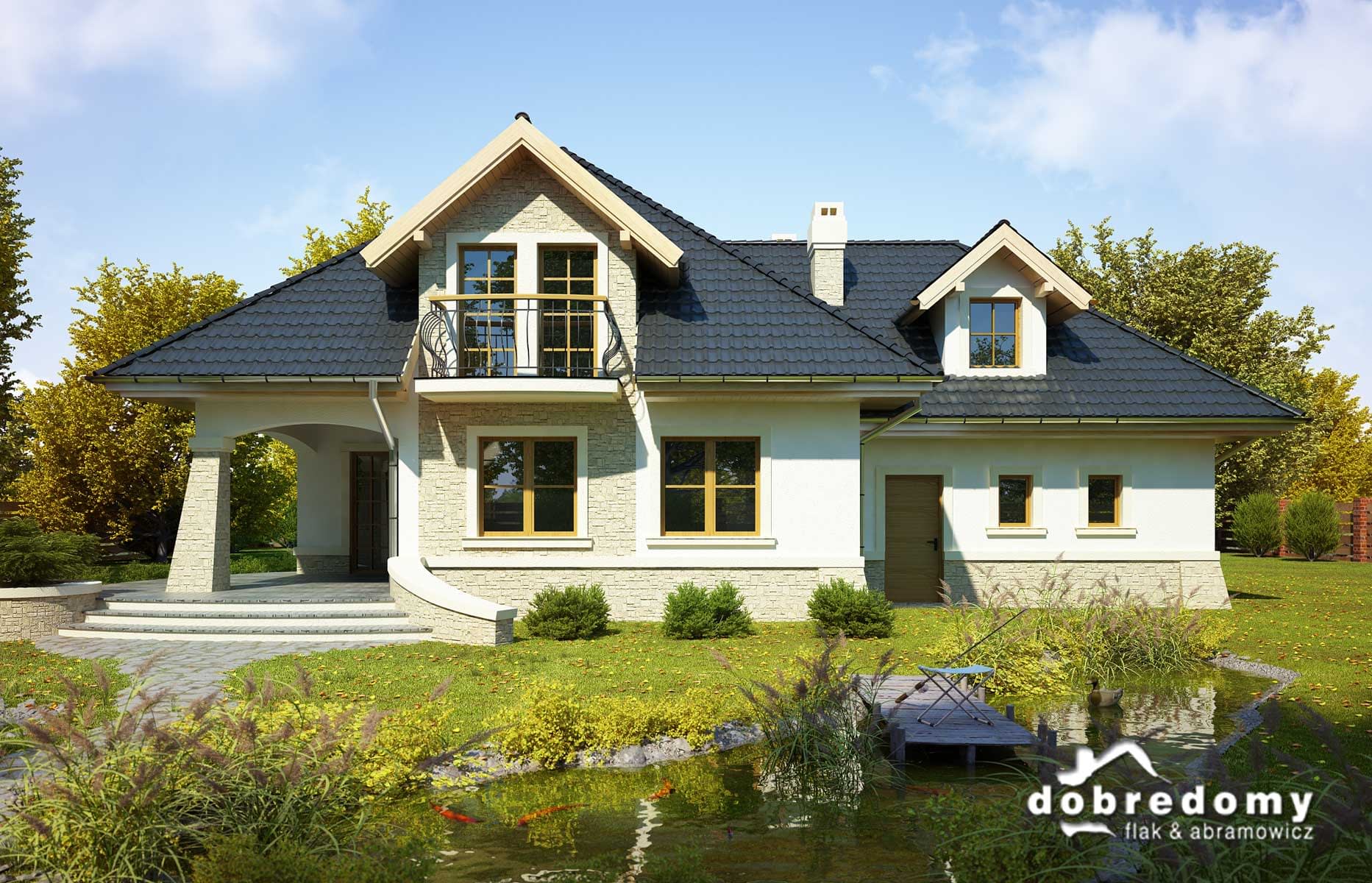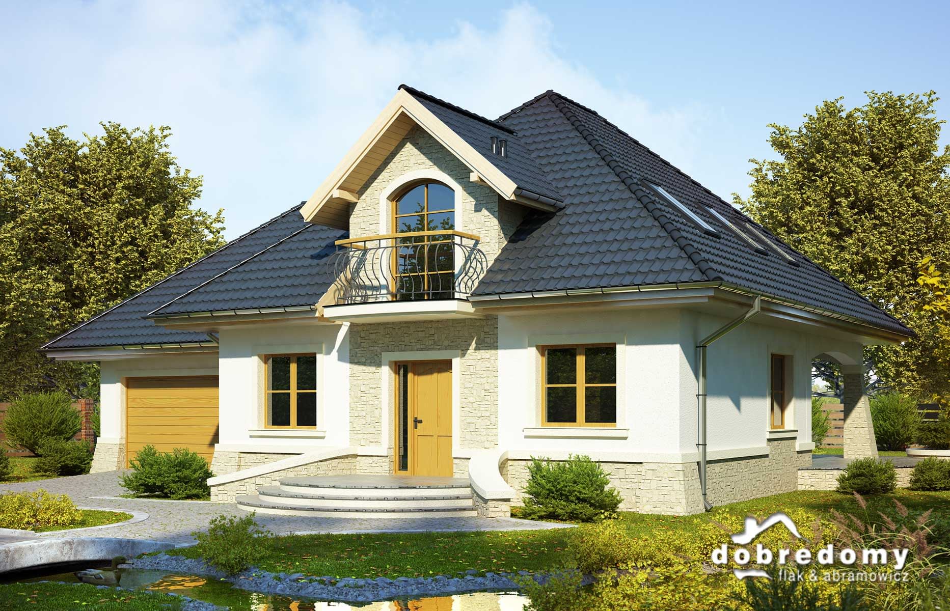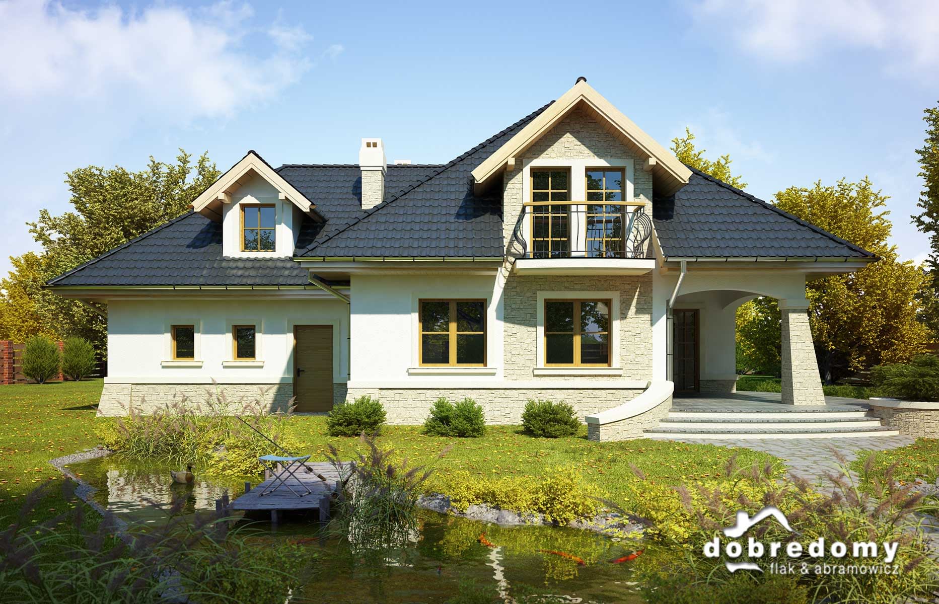 Elewacje pokryte tynkiem strukturalnym w systemie ociepleń Termo Organika. W projekcie zastosowano okna dachowe marki FAKRO. Pokrycie dachu - dachówka ceramiczna lub cementowa CREATON.