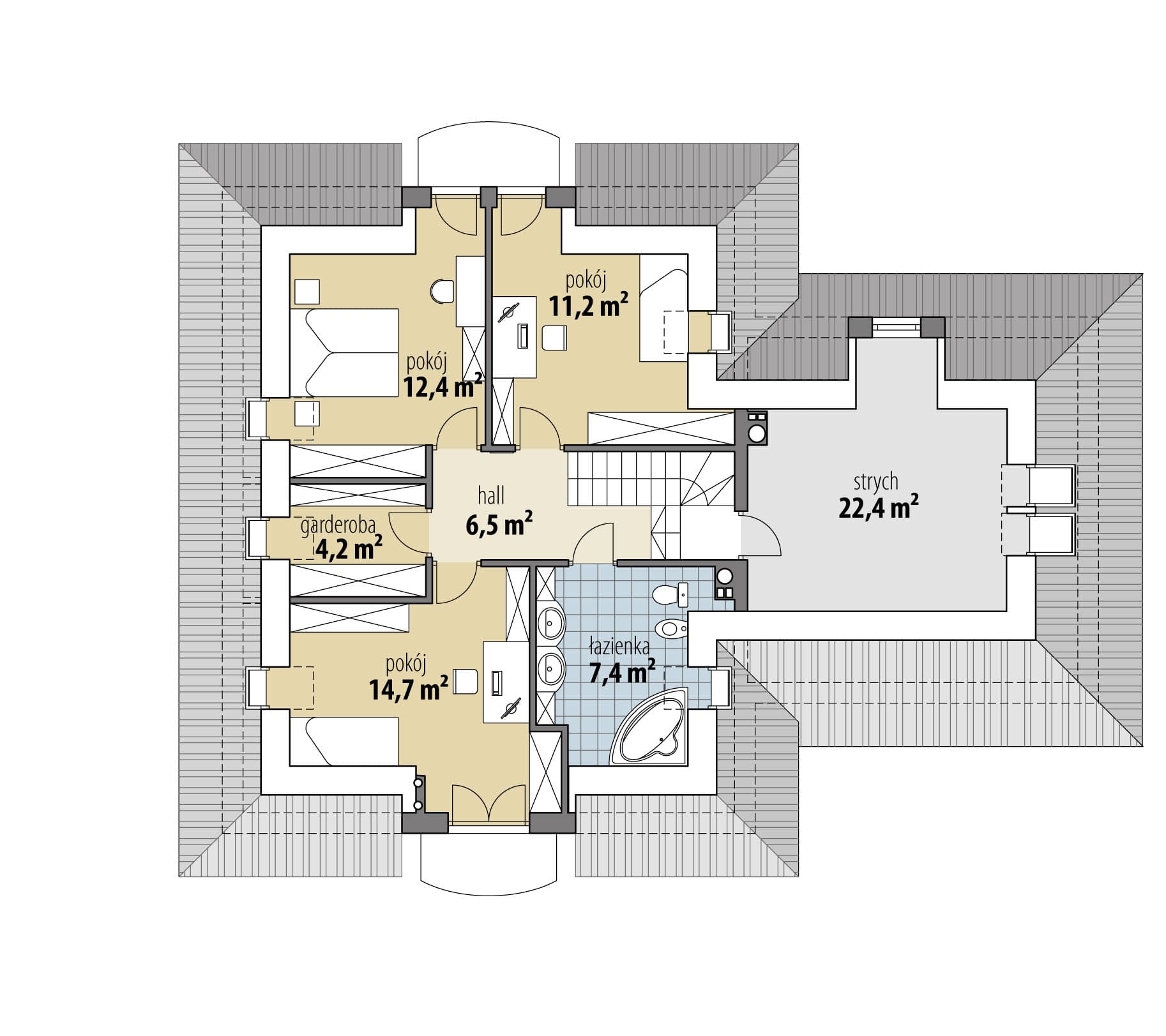 - Rodzaj dachuWielospadowy
