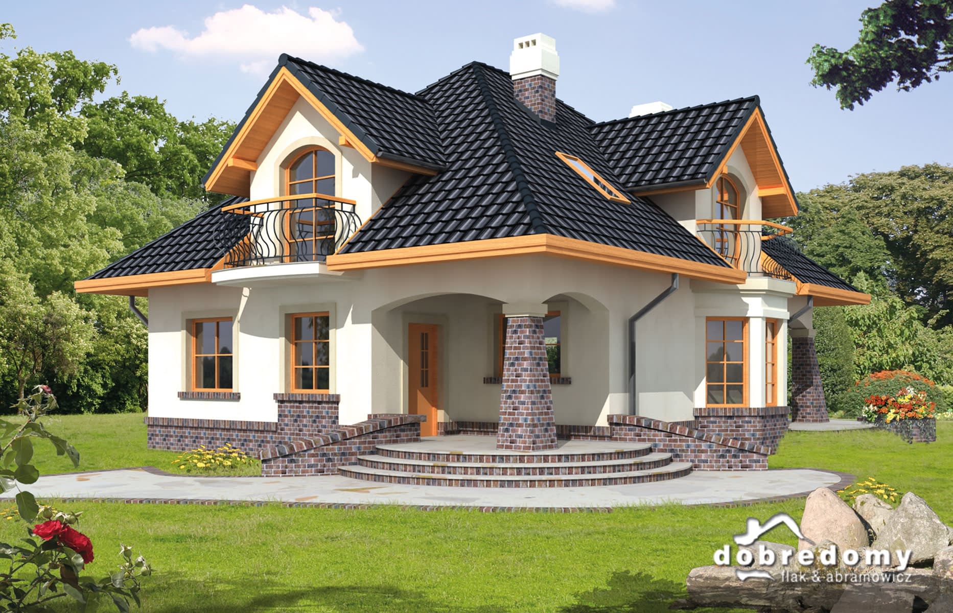 Elewacje pokryte tynkiem strukturalnym w systemie ociepleń Termo Organika. W projekcie zastosowano okna dachowe marki FAKRO. Pokrycie dachu - dachówka ceramiczna lub cementowa CREATON.