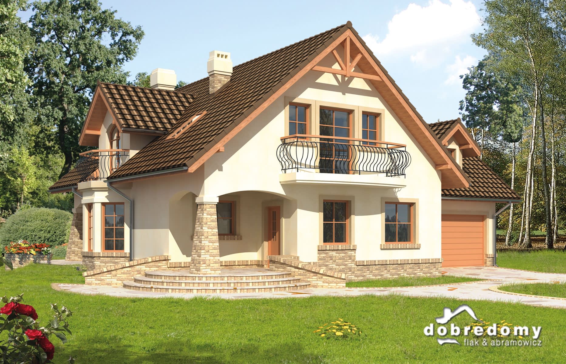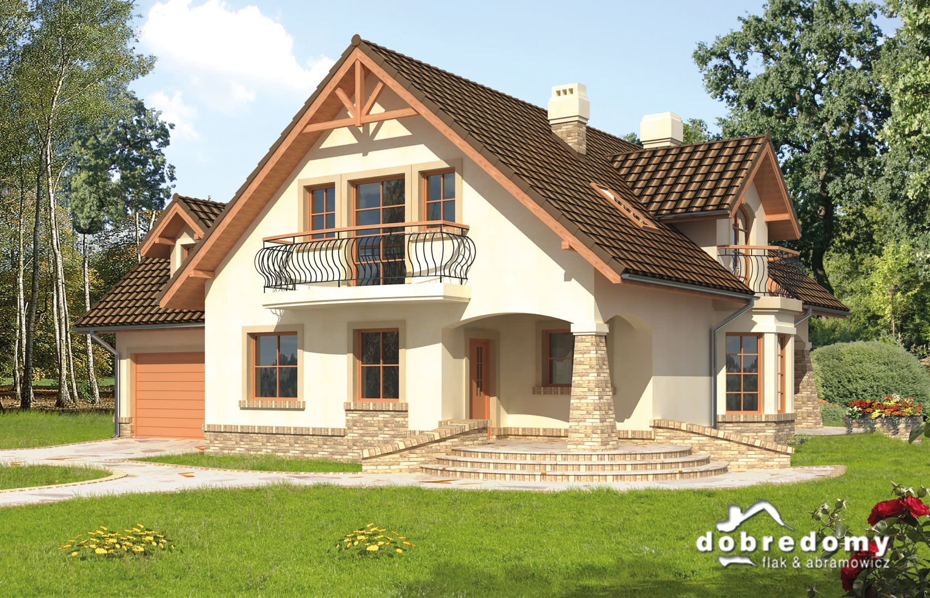 Elewacje pokryte tynkiem strukturalnym w systemie ociepleń Termo Organika. W projekcie zastosowano okna dachowe marki FAKRO. Pokrycie dachu - dachówka ceramiczna lub cementowa CREATON.