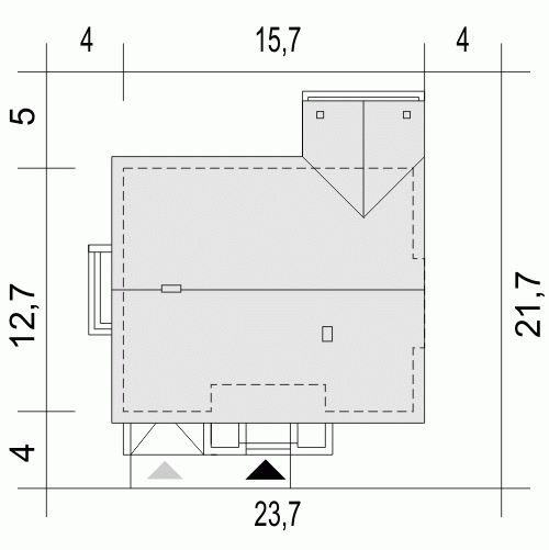 - Minimalne wymiary działki21.7 x 23.7m