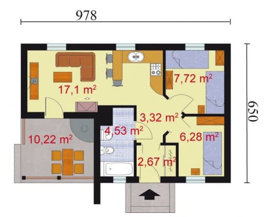 - powierzchnia zabudowy (bez werandy) - 53.65m2