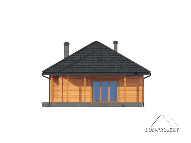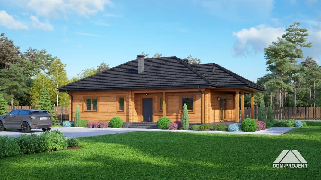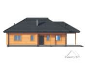 Dom parterowy z bali drewnianych. Duży salon z aneksem kuchennym, kominkiem i wyjściem na duży zadaszony taras. Trzy pokoje, dwie łazienki, wiatrołap, spiżarka, komunikacja i schowek. Wyjście na poddasze schodami strychowymi rozkładanymi.Rzuty