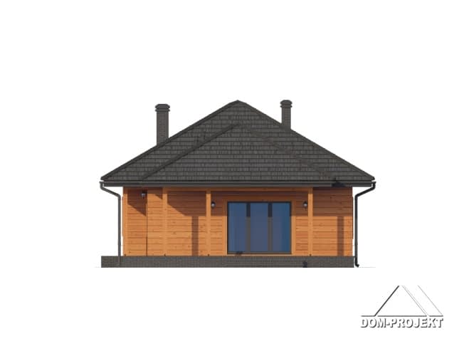 Dom parterowy w konstrukcji szkieletu drewnianego. Duży salon z aneksem kuchennym, kominkiem i wyjściem na duży zadaszony taras. Trzy pokoje, dwie łazienki, wiatrołap, spiżarka, komunikacja i schowek. Wyjście na poddasze schodami strychowymi rozkładanymi.Rzuty