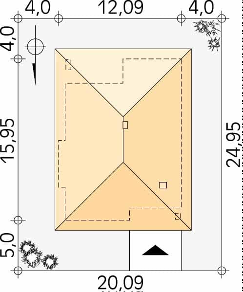 - Minimalne wymiary działki24.95 x 20.09m