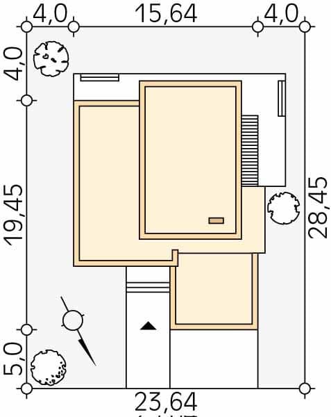 - Minimalne wymiary działki28.45 x 23.64m