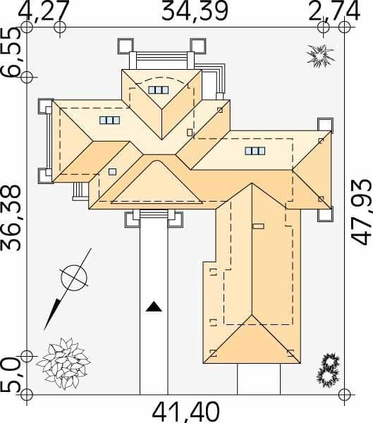 Ściany: 2-warstwowe - pustak ceramiczny + styropian, Stropy: żelbetowe, wylewane, Dach: dachówka, kąt nachylenia 38° i 30°Rzuty