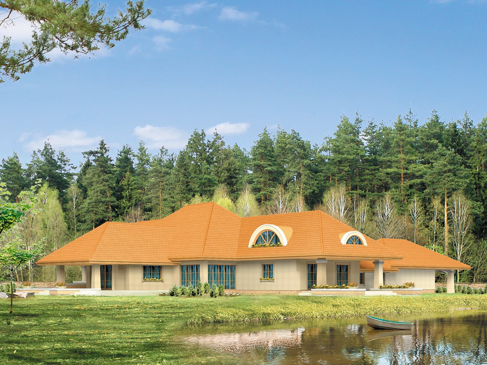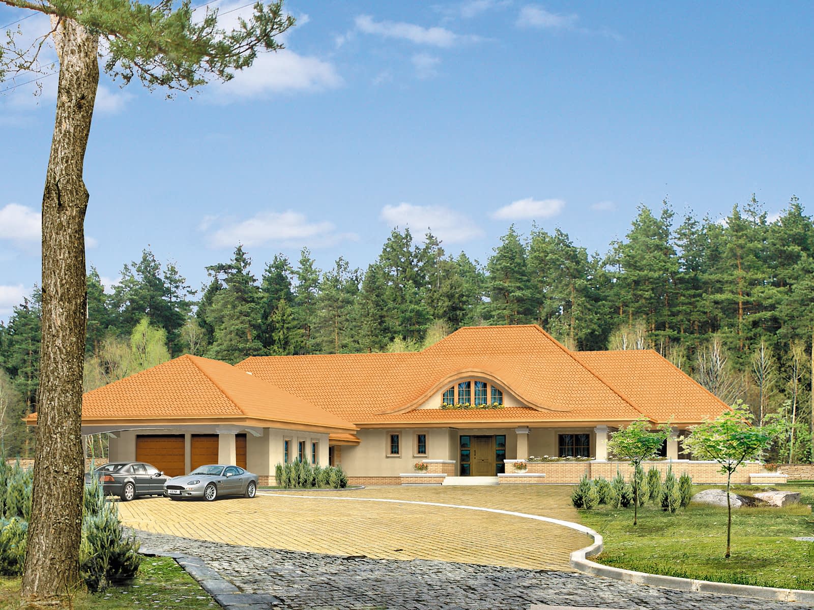Reprezentacyjny dom jednorodzinny. Prostota wnętrza oraz czysty układ funkcjonalny nie pozbawiają cech indywidualnych.Konstrukcja
