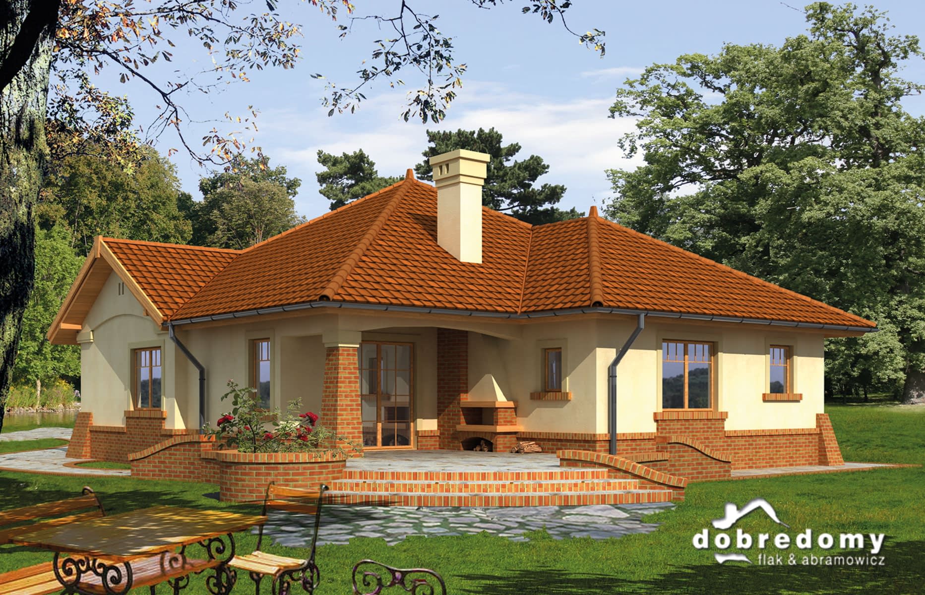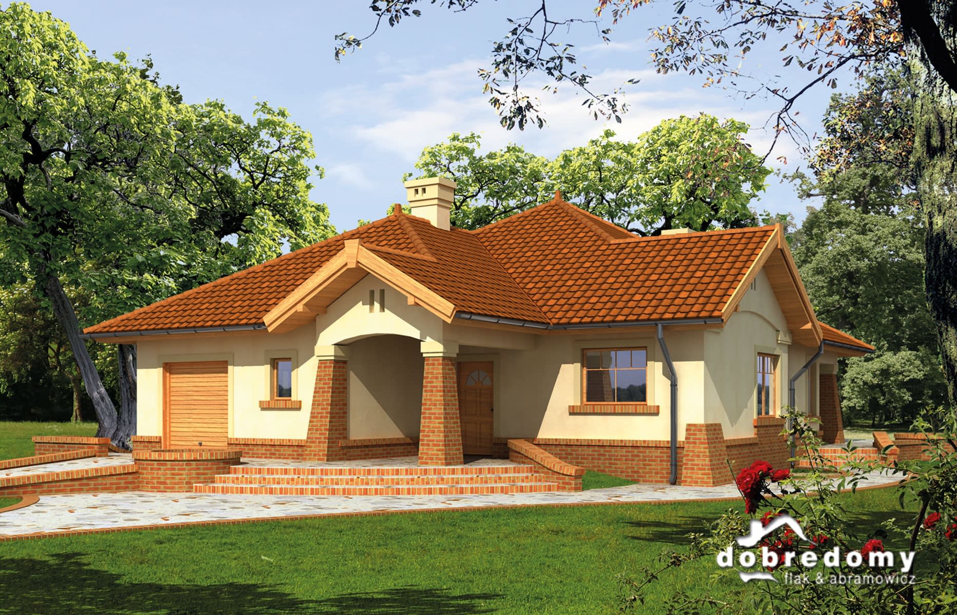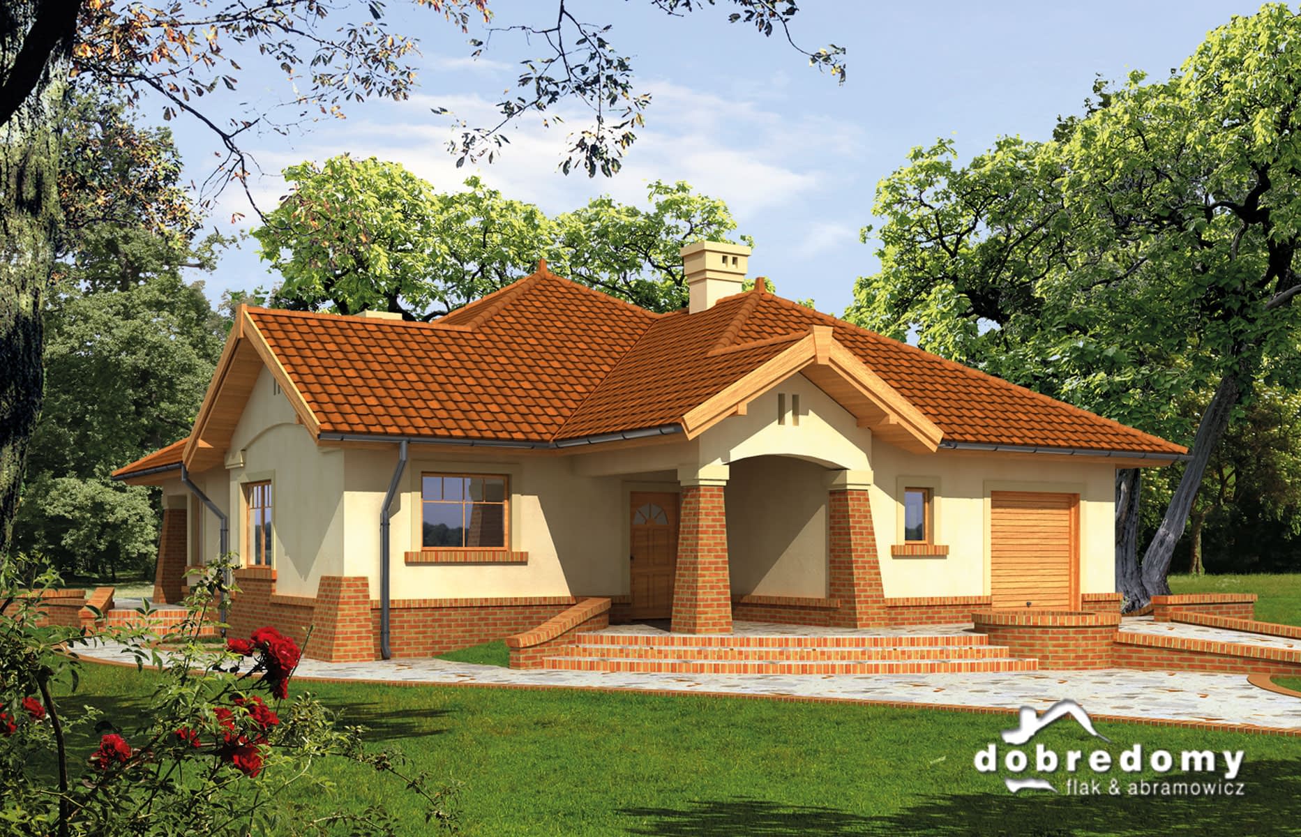 Elewacje pokryte tynkiem strukturalnym w systemie ociepleń Termo Organika. Pokrycie dachu - dachówka ceramiczna lub cementowa CREATON.