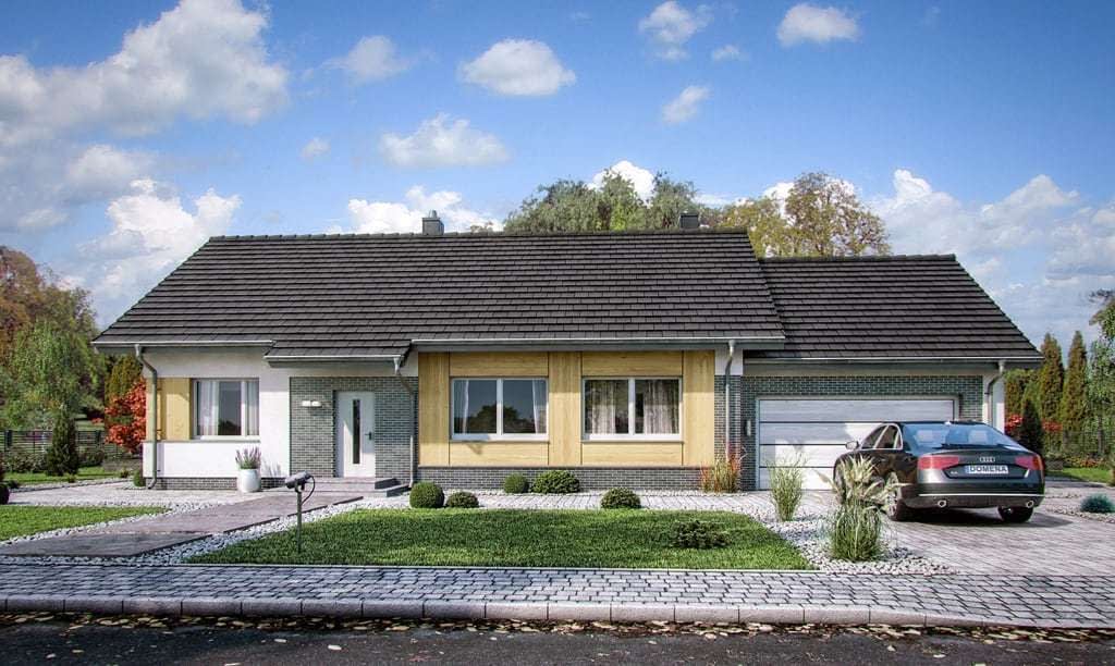 Wizualizacja jest propozycją tego jak dany projekt domu oraz jego otoczenie można zaaranżować. Sposób prowadzenia tarasu, kształt murków i elementy małej architektury typu pergole, donice itp. nie są objęte zakresem projektu. W związku z powyższym na projekcie budowlanym elementy te mogą nie być uwzględnione w projekcie ( patrz pergole ) lub zmieniony może być ich kształt i sposób prowadzenia ( wielkości tarasów, profil murków )