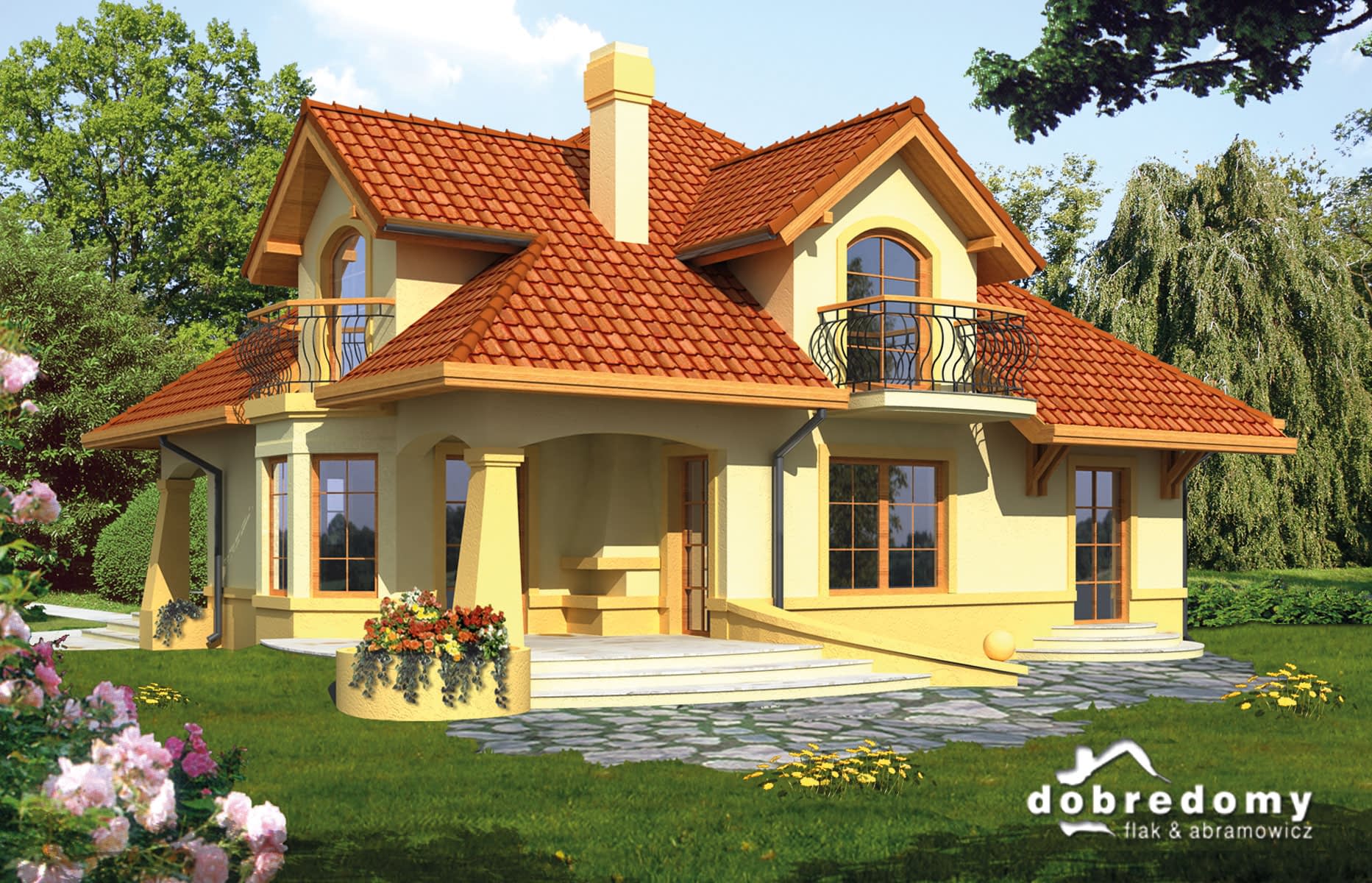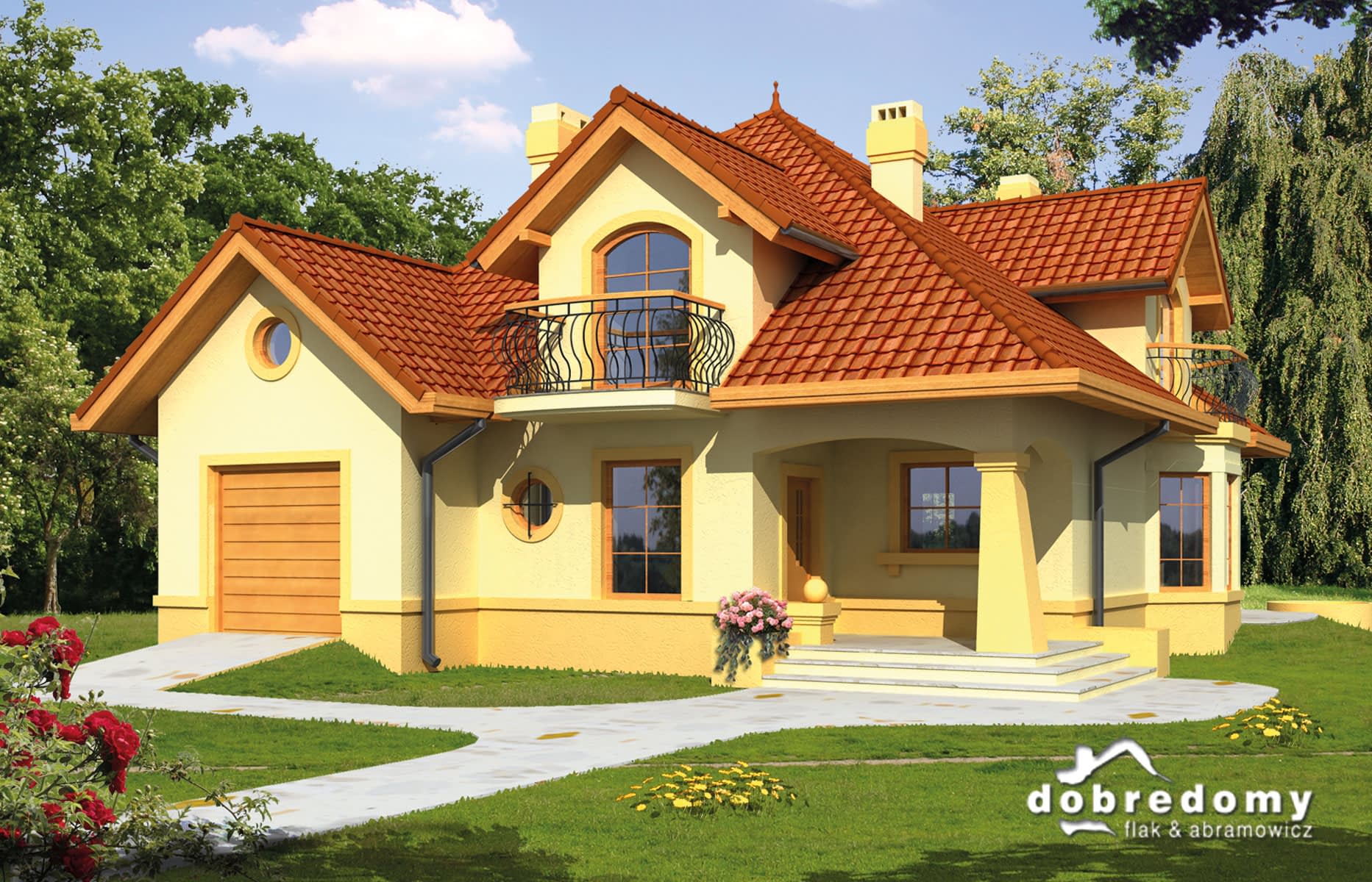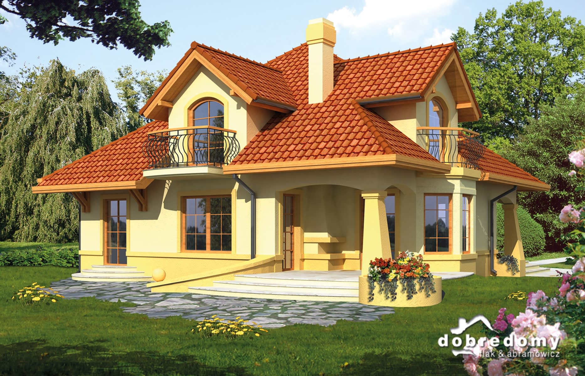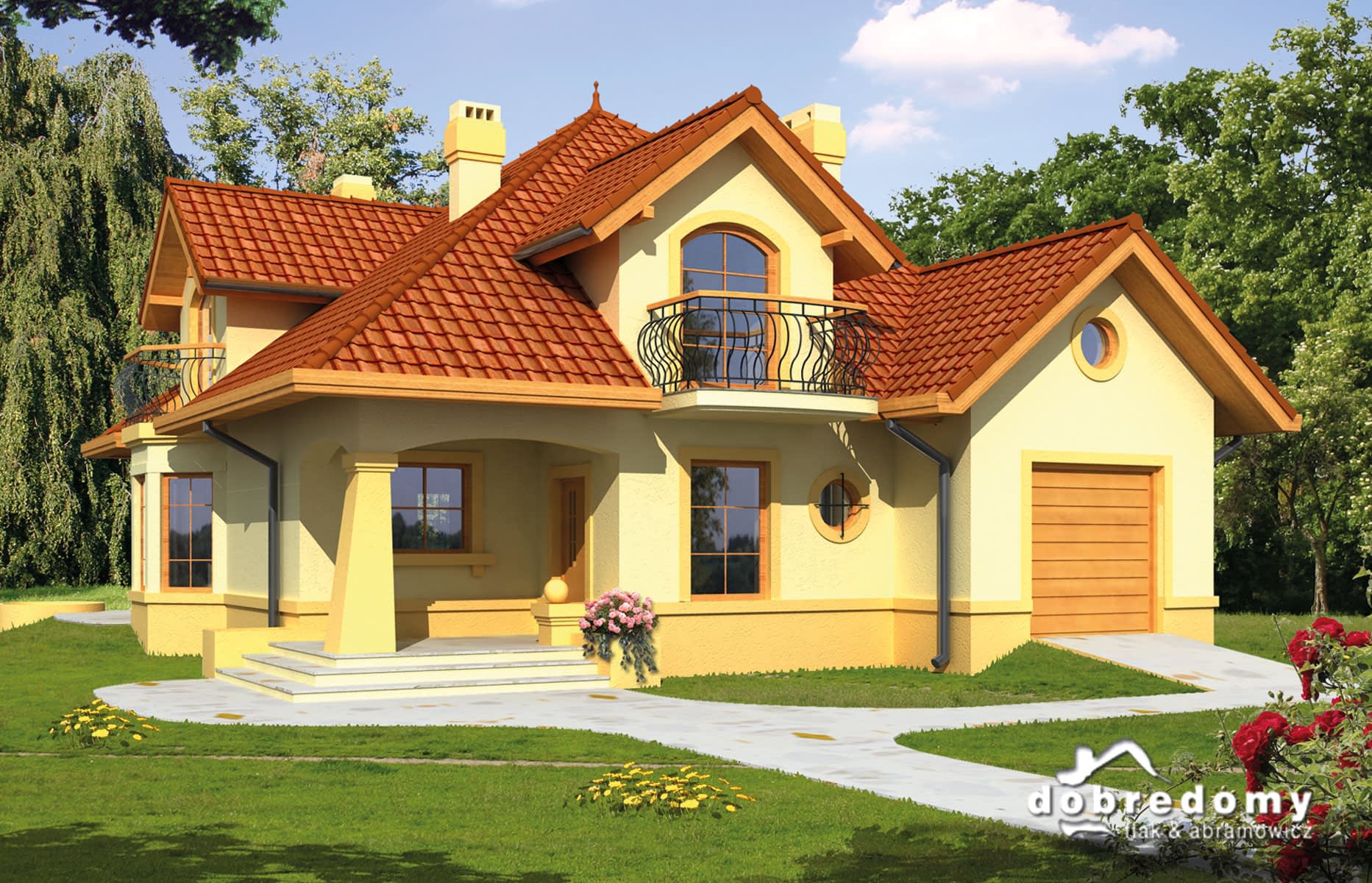 - Kolorystyka elewacji, detali dekoracyjnych, kształtu podjazdów i tarasów.
