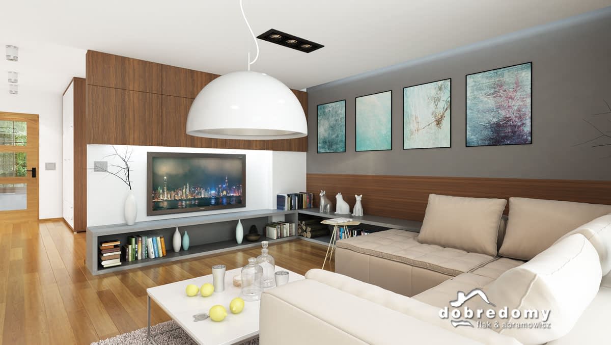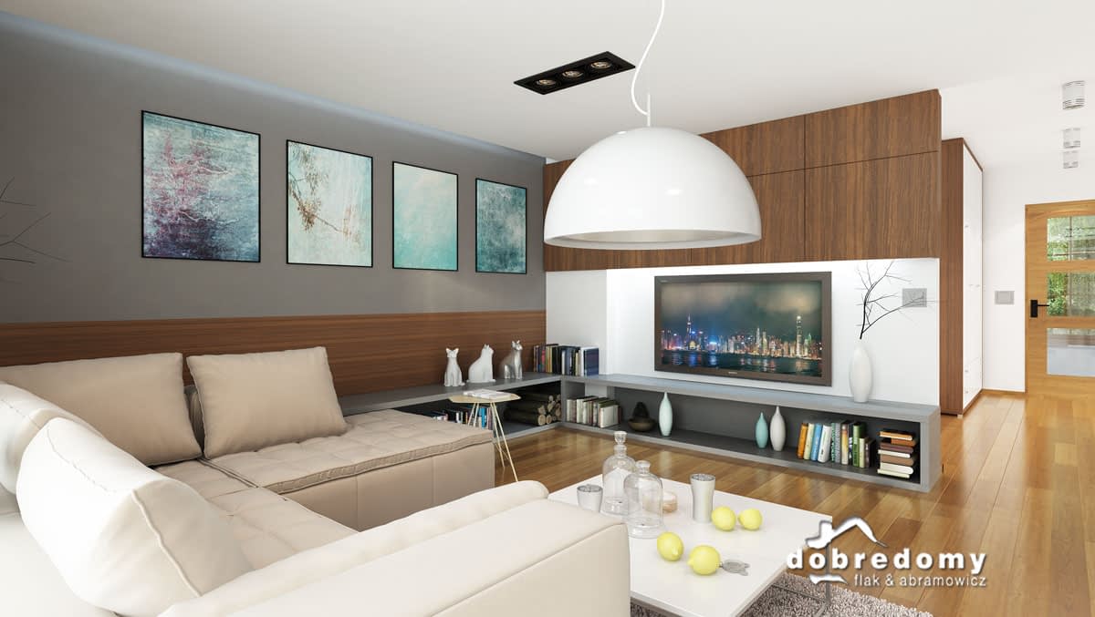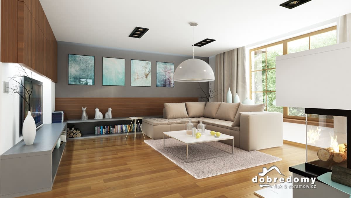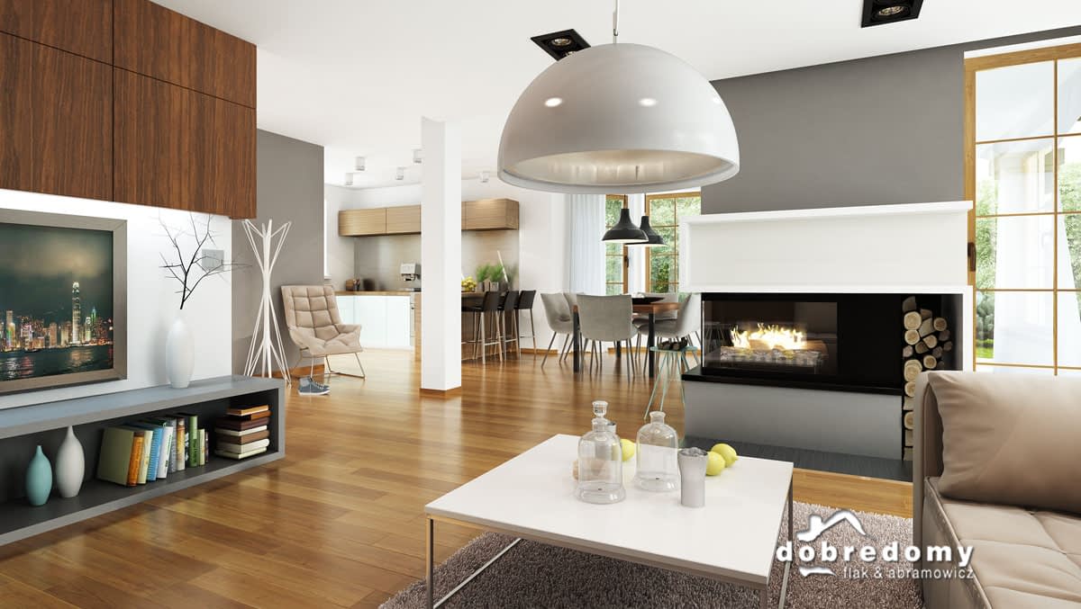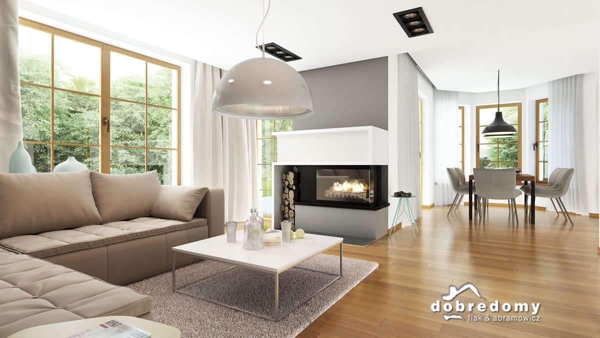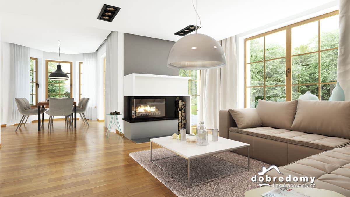 Elewacje pokryte tynkiem strukturalnym w systemie ociepleń Termo Organika. W projekcie zastosowano okna dachowe marki FAKRO. Pokrycie dachu - dachówka ceramiczna lub cementowa CREATON.