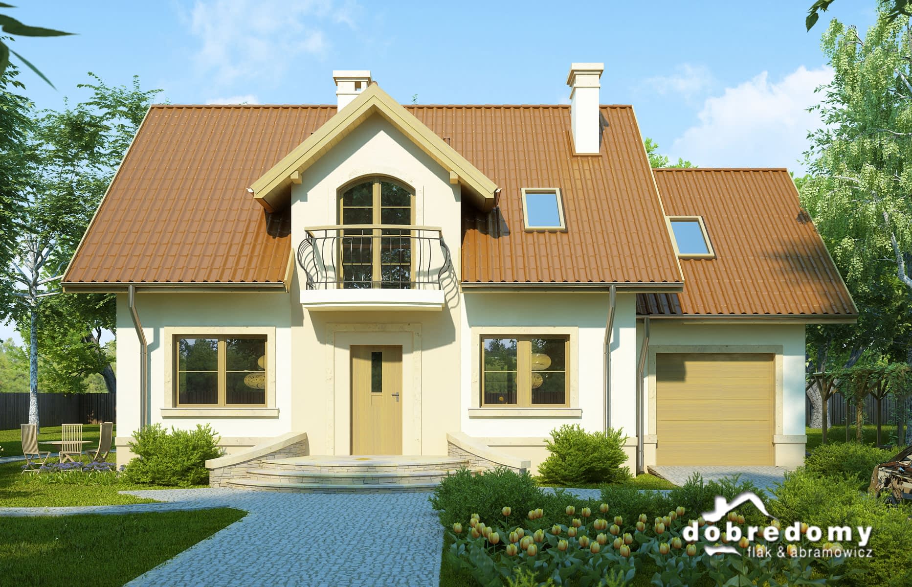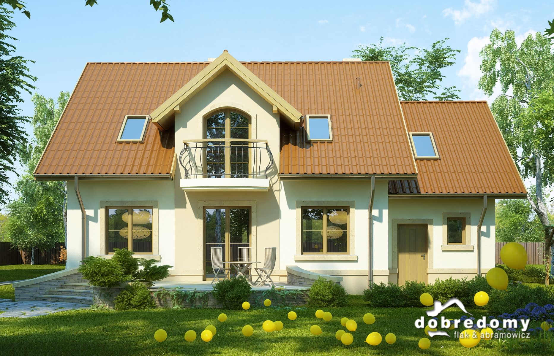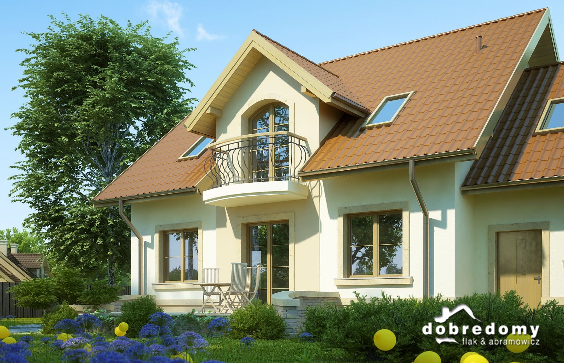Elewacje pokryte tynkiem strukturalnym w systemie ociepleń Termo Organika. W projekcie zastosowano okna dachowe marki FAKRO. Pokrycie dachu - dachówka ceramiczna lub cementowa.