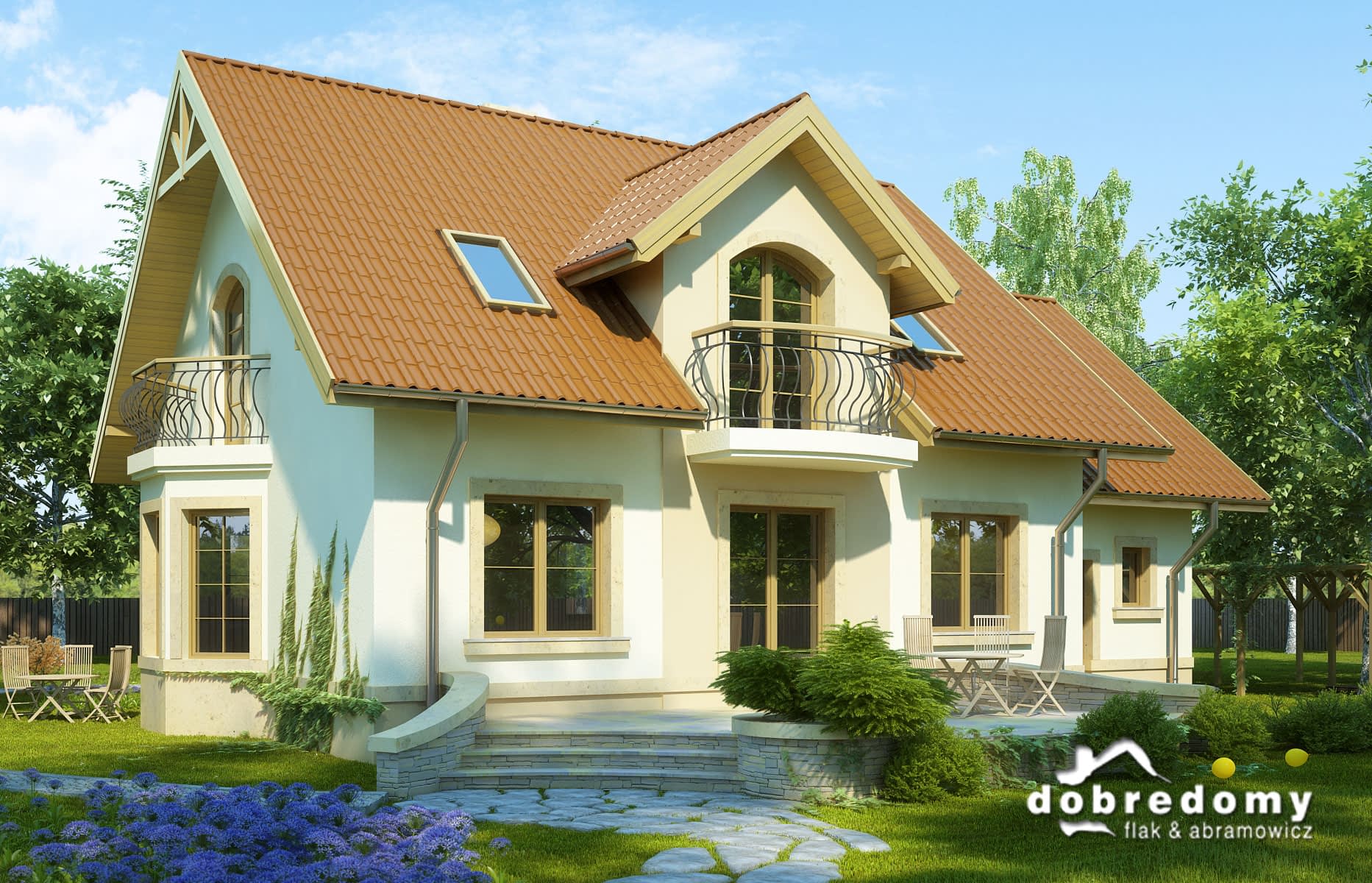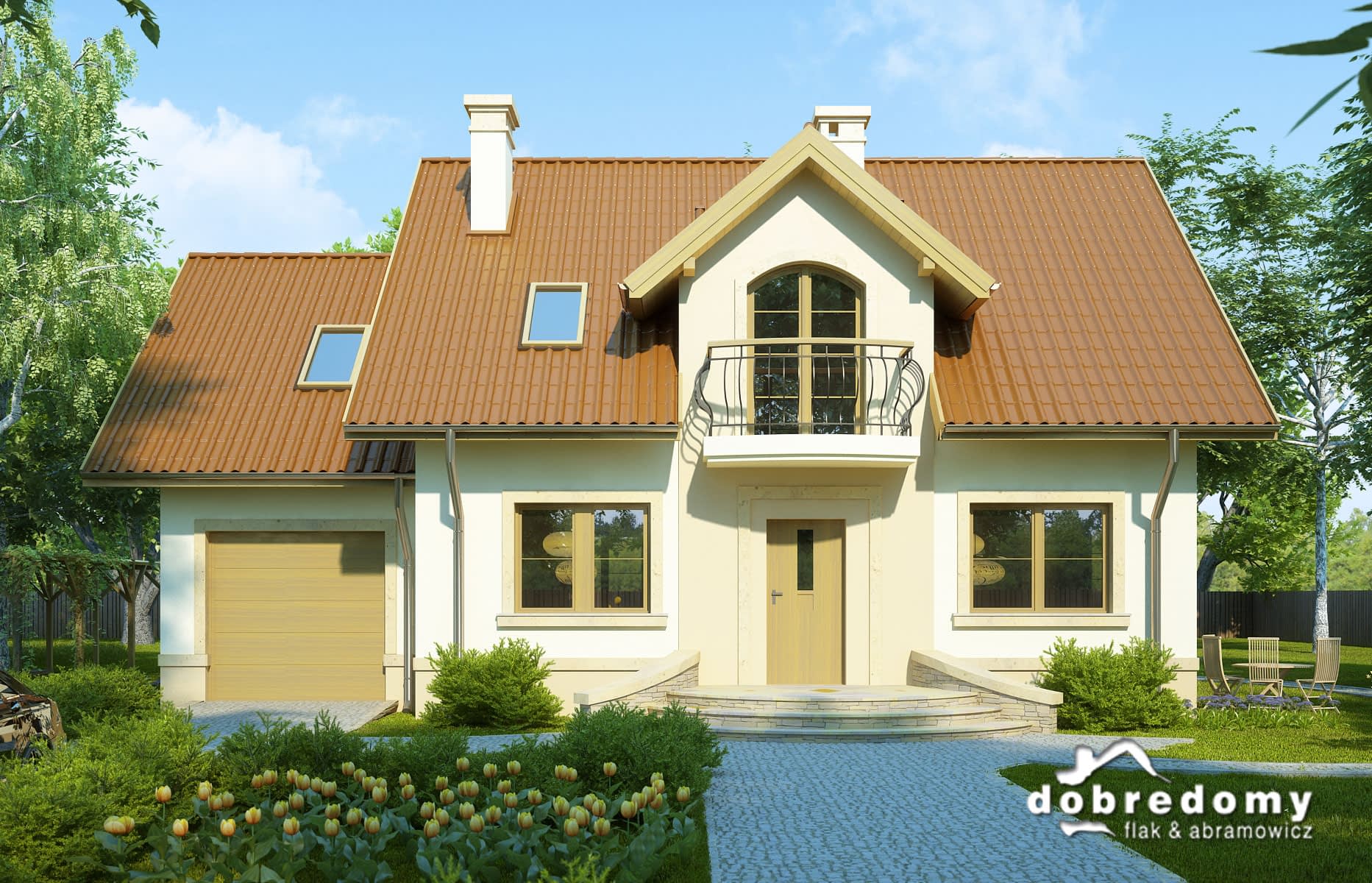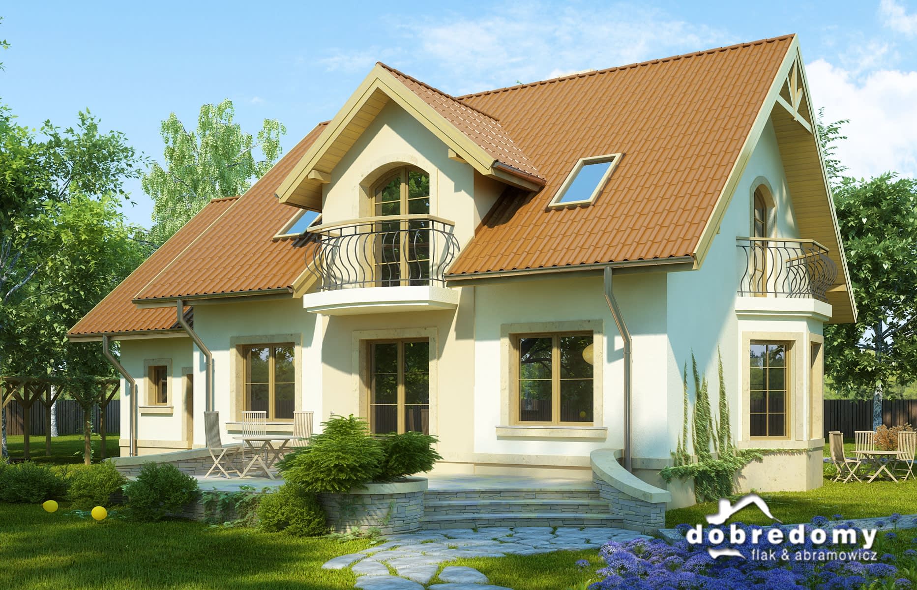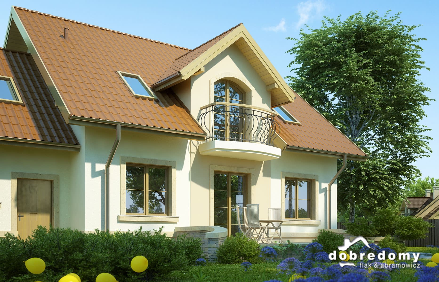 Elewacje pokryte tynkiem strukturalnym w systemie ociepleń Termo Organika. W projekcie zastosowano okna dachowe marki FAKRO. Pokrycie dachu - dachówka ceramiczna lub cementowa.