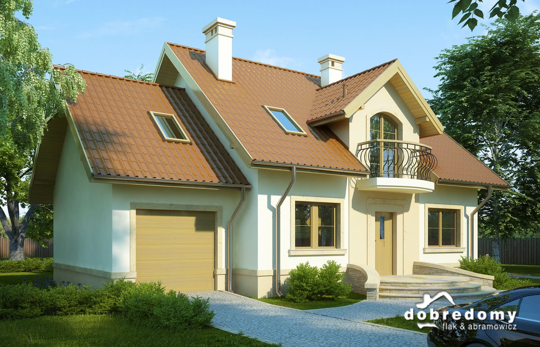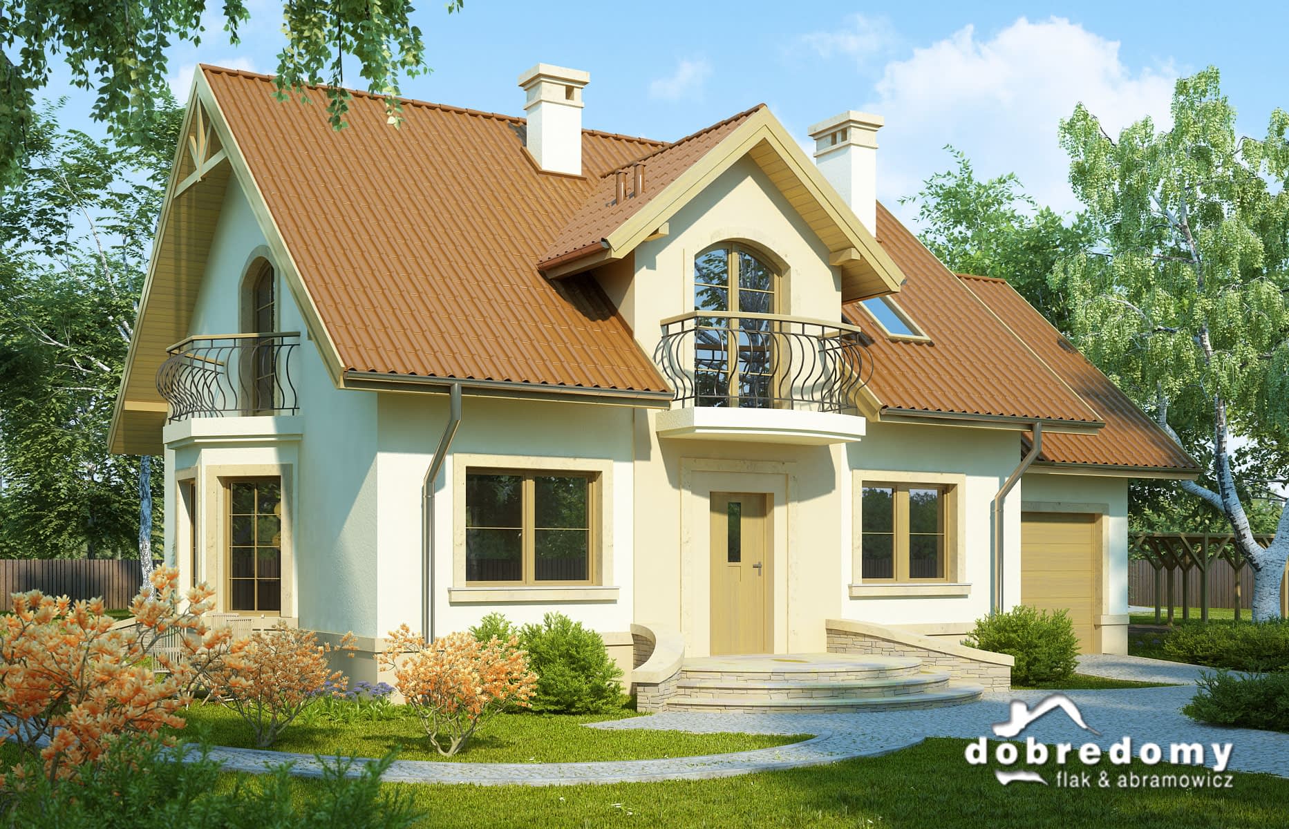 - Kolorystyka elewacji, detali dekoracyjnych, kształtu podjazdów i tarasów.