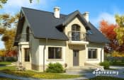 Elewacje pokryte tynkiem strukturalnym w systemie ociepleń Termo Organika. Pokrycie dachu dachówką ceramiczną bądź cementową.