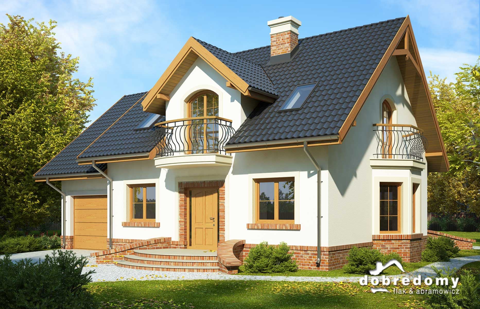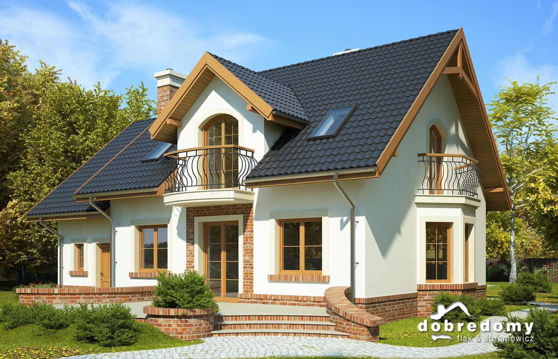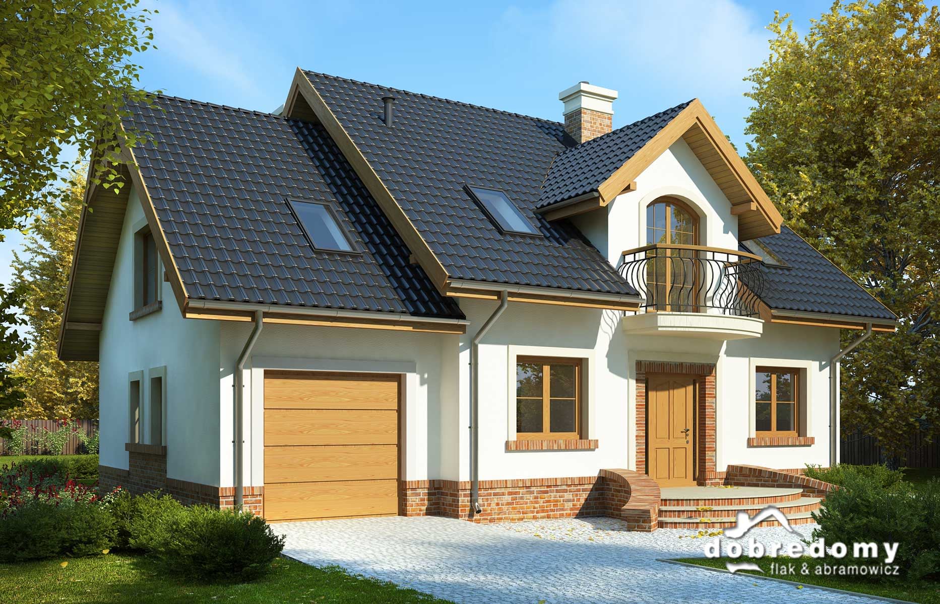 Elewacje pokryte tynkiem strukturalnym w systemie ociepleń Termo Organika oraz okładziną klinkierową. W projekcie zastosowano okna dachowe marki FAKRO. Pokrycie dachu - dachówka ceramiczna lub cementowa CREATON.