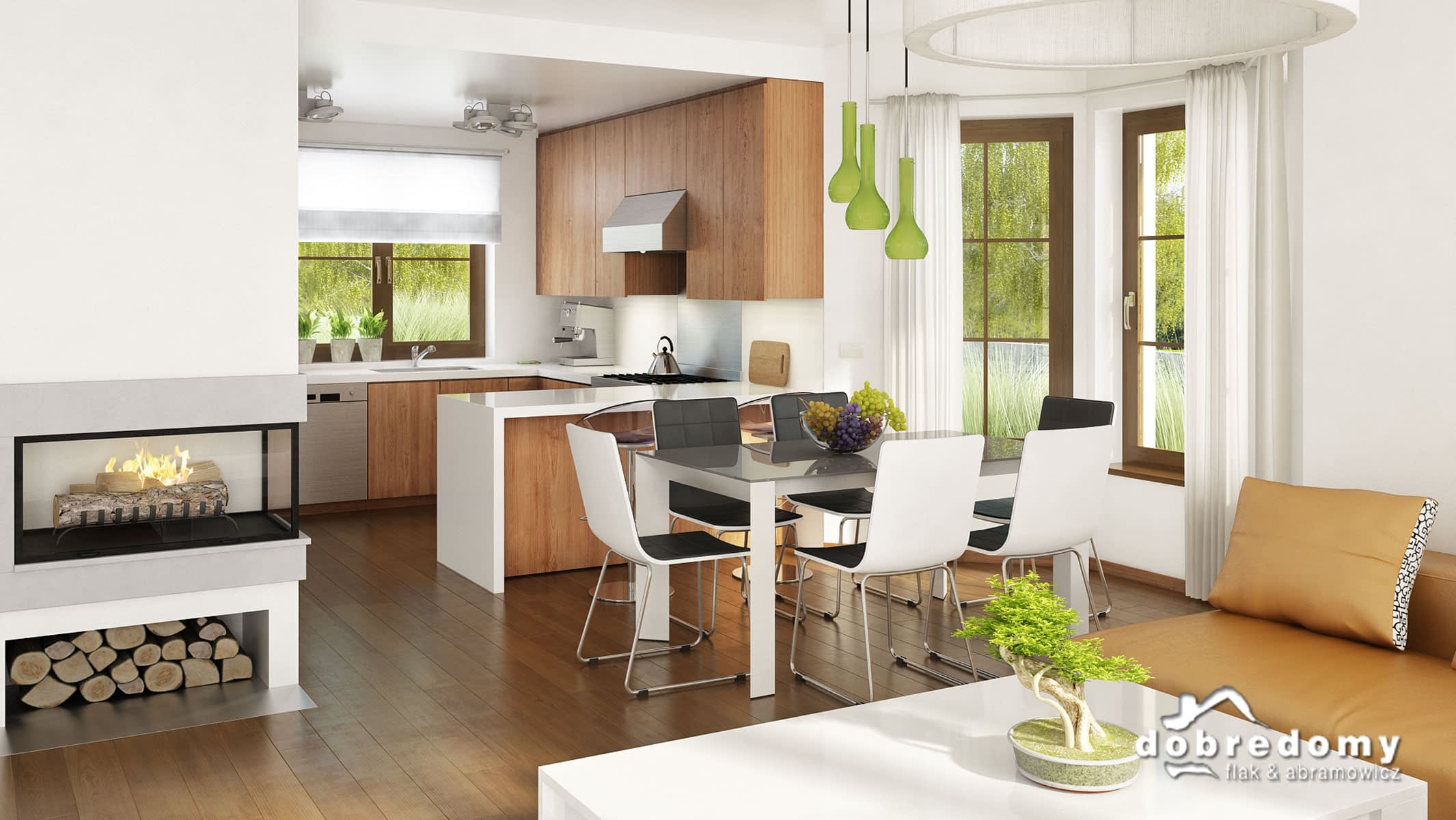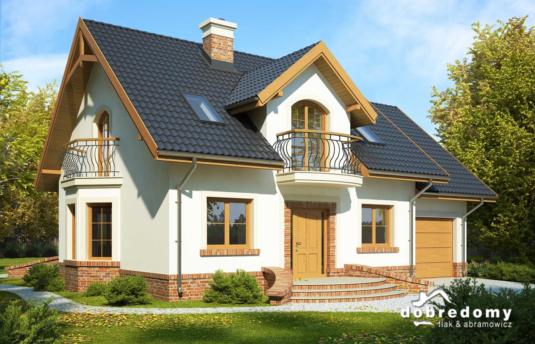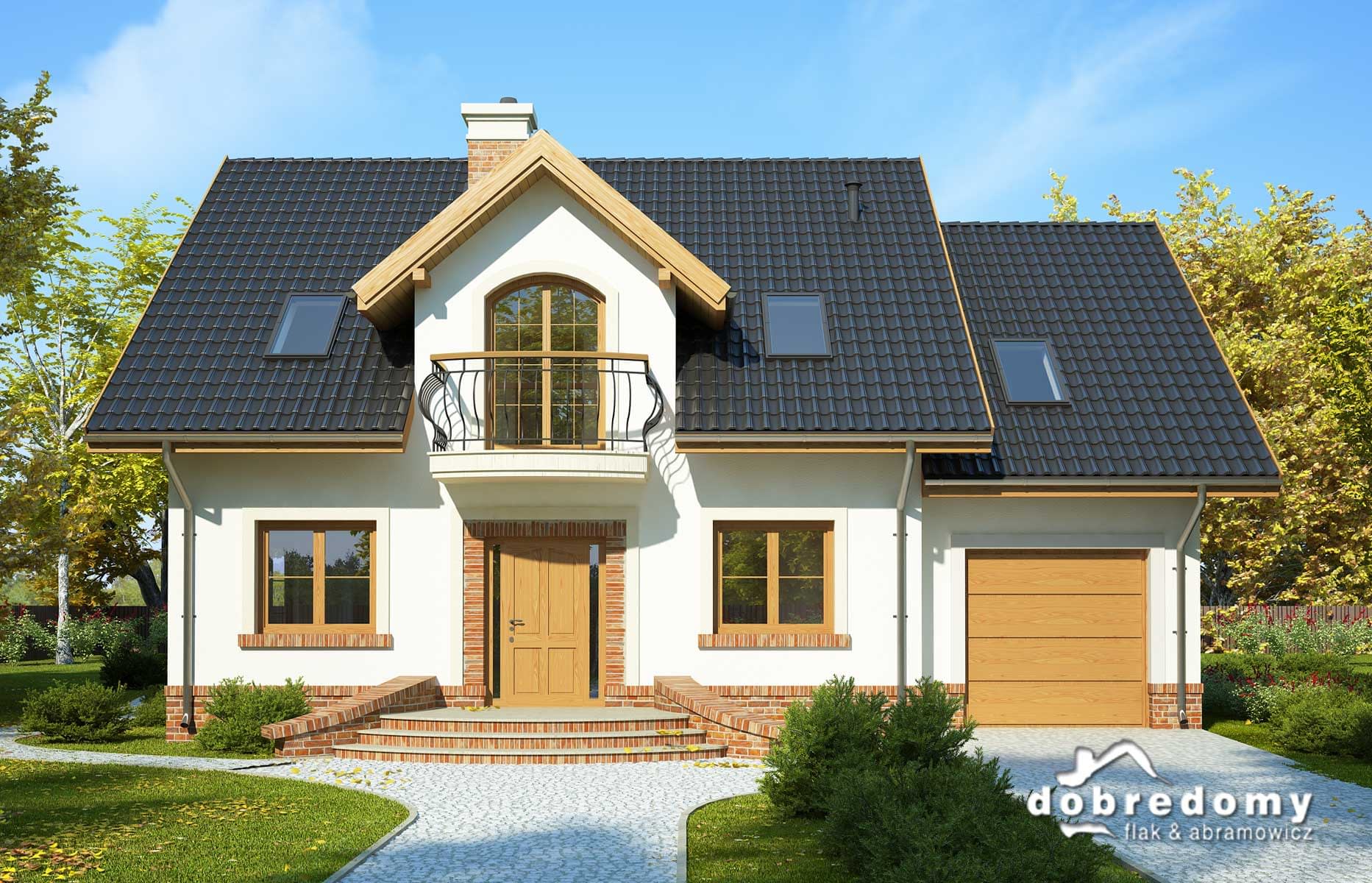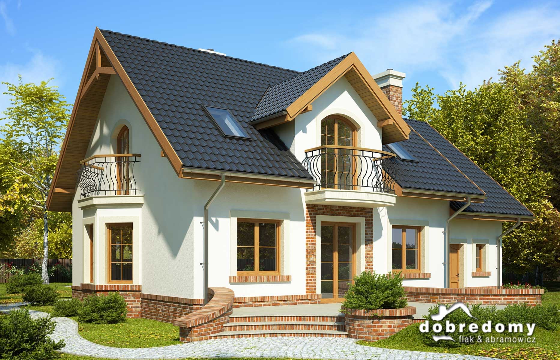 Elewacje pokryte tynkiem strukturalnym w systemie ociepleń Termo Organika oraz okładziną klinkierową. W projekcie zastosowano okna dachowe marki FAKRO. Pokrycie dachu - dachówka ceramiczna lub cementowa CREATON.