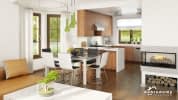 Elewacje pokryte tynkiem strukturalnym w systemie ociepleń Termo Organika oraz okładziną klinkierową. W projekcie zastosowano okna dachowe marki FAKRO. Pokrycie dachu - dachówka ceramiczna lub cementowa CREATON.