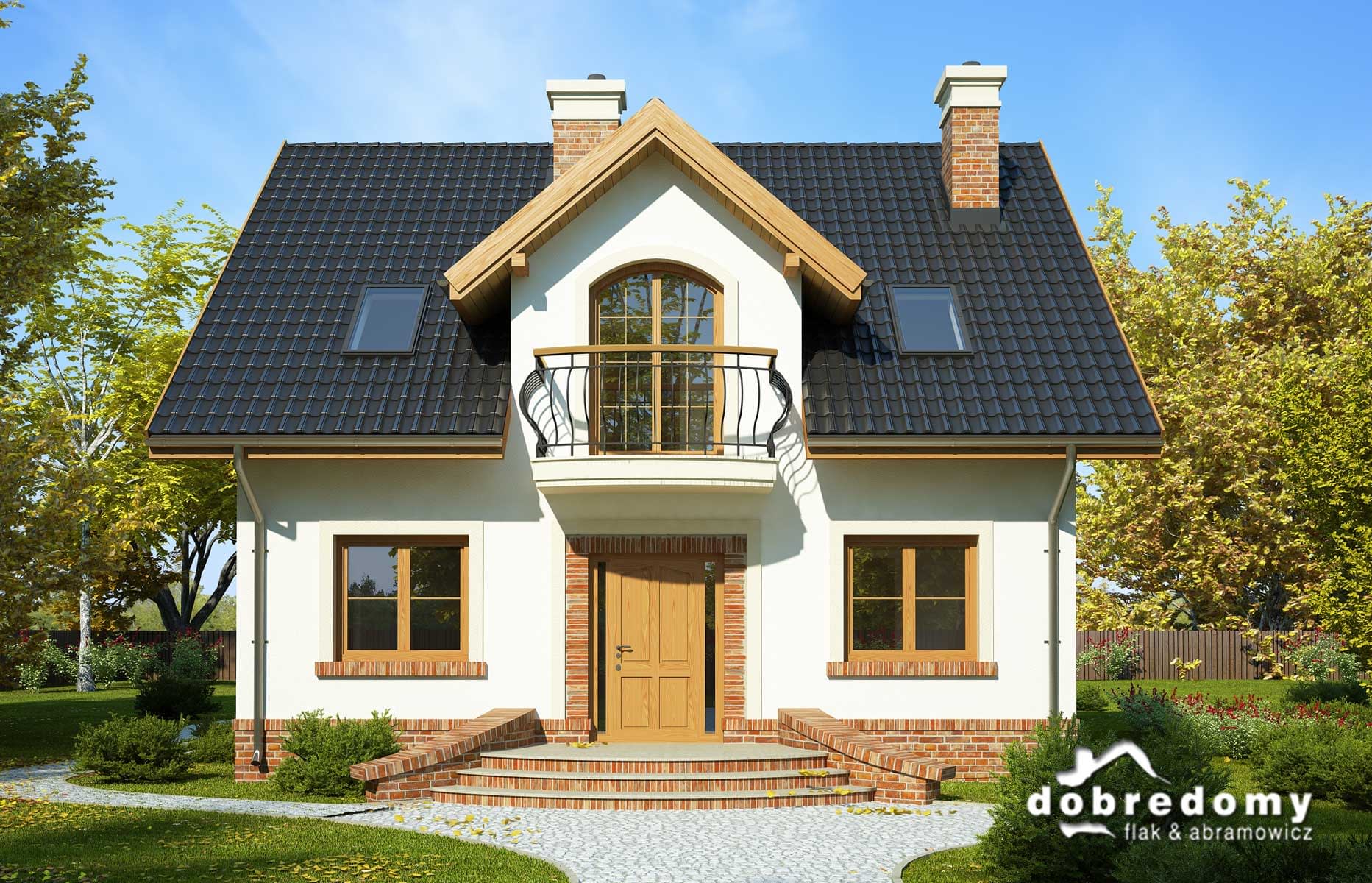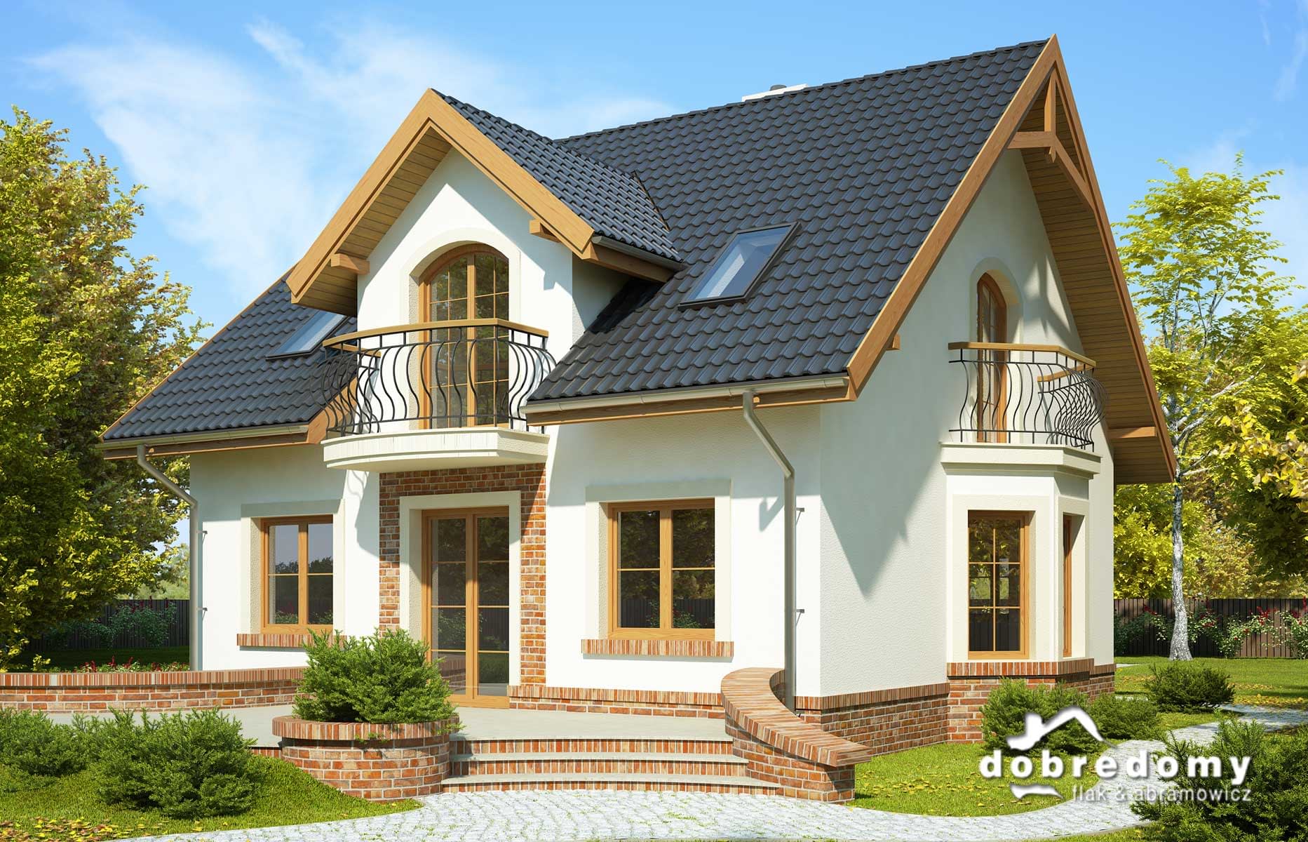 Elewacje pokryte tynkiem strukturalnym w systemie ociepleń Termo Organika oraz okładziną klinkierową. W projekcie zastosowano okna dachowe marki FAKRO. Pokrycie dachu - dachówka ceramiczna lub cementowa CREATON.
