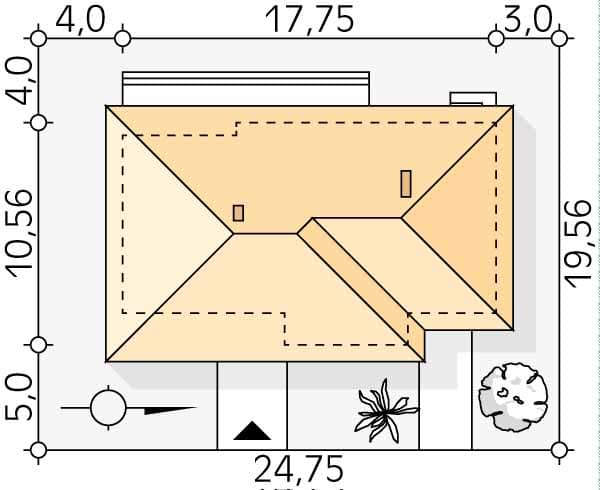 - Minimalne wymiary działki19.56 x 24.75m